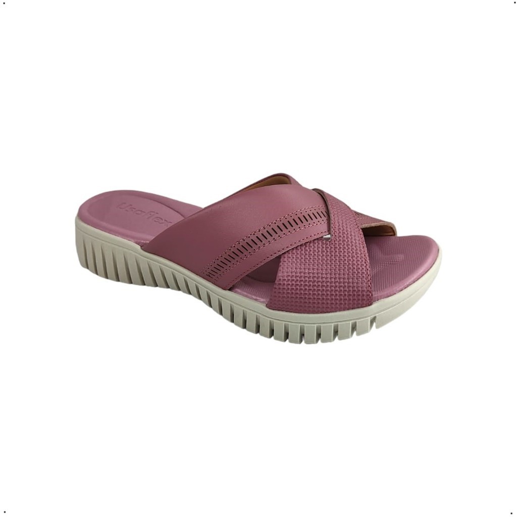 Tamanco Anabela Usaflex Couro Ortopedico Tiras em X AH0112