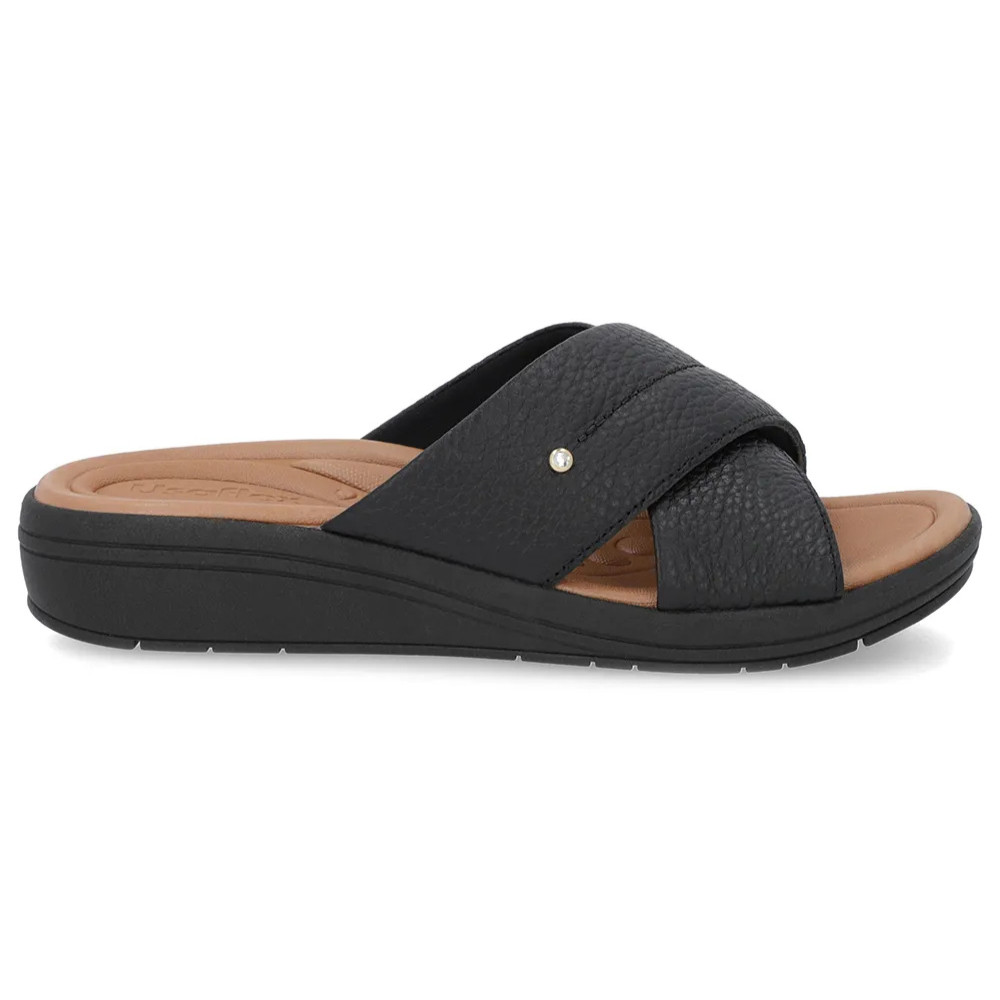 Tamanco Anabela Usaflex Feminino Preto Linha Enfeite plataforma ortopédica