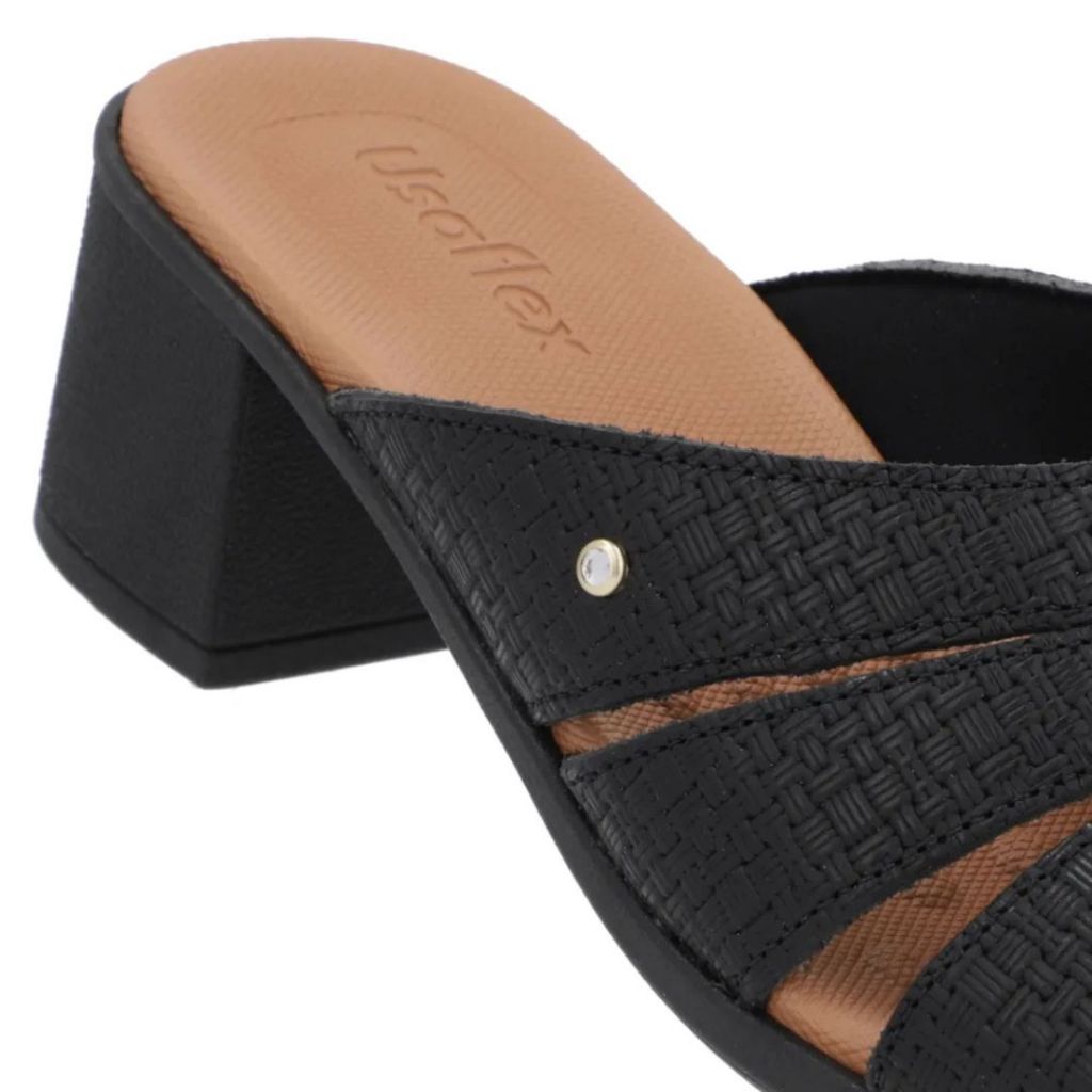 Tamanco Fem. Salto Bloco Médio Couro Strass Usaflex UC220020