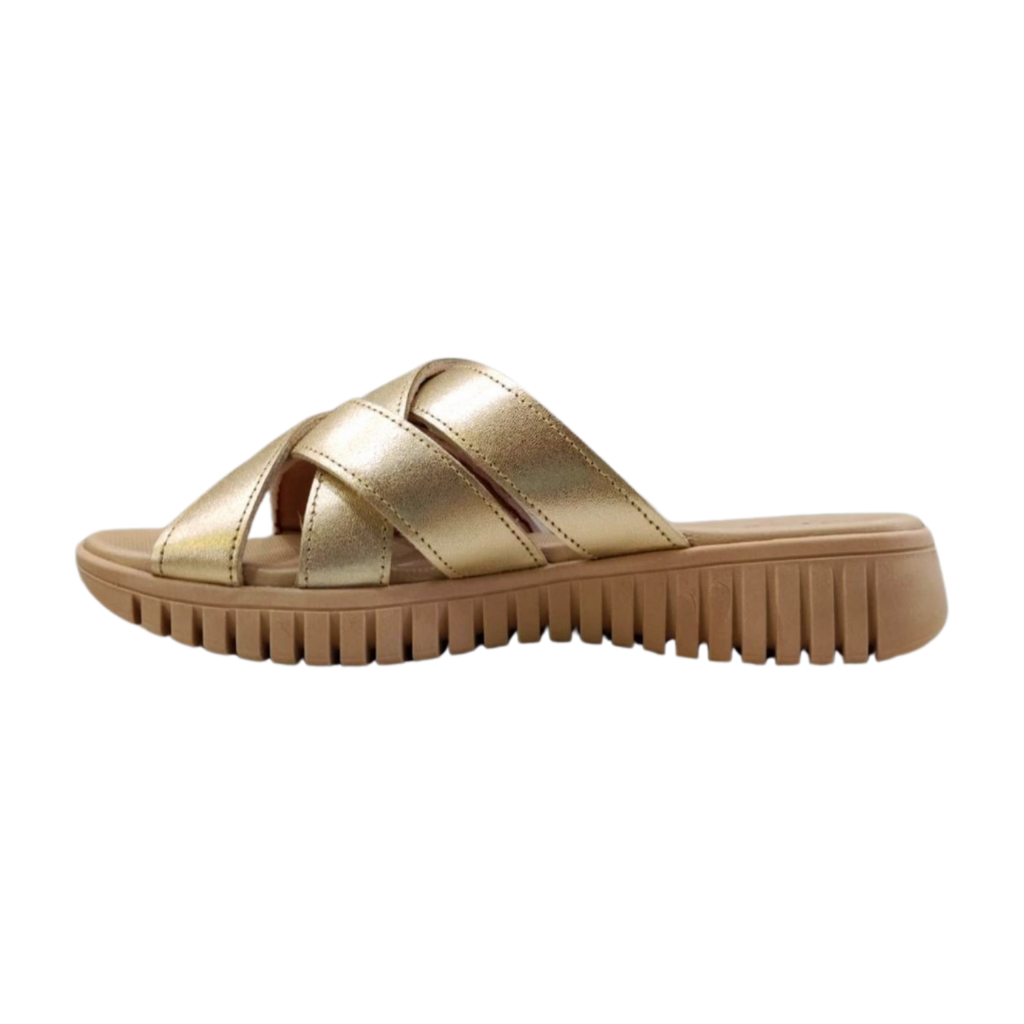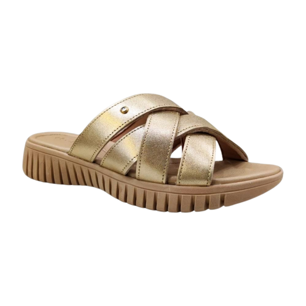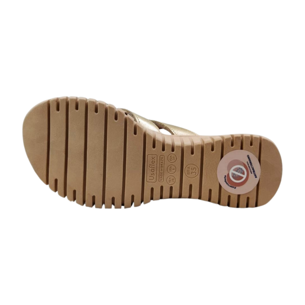 Tamanco Feminino Flat Usaflex Conforto Uc21002 Ouro Ligth