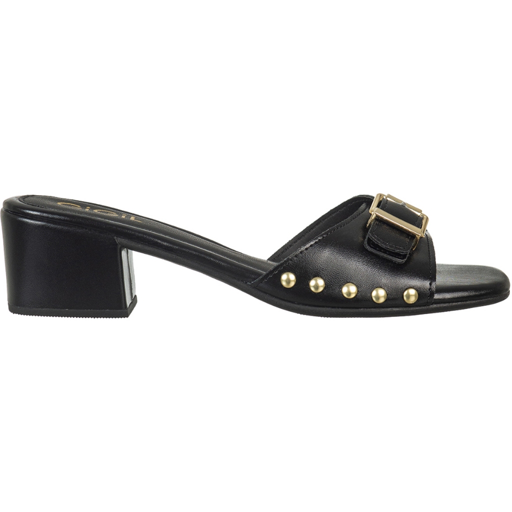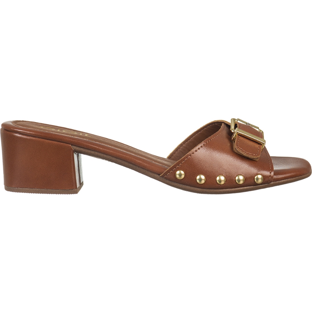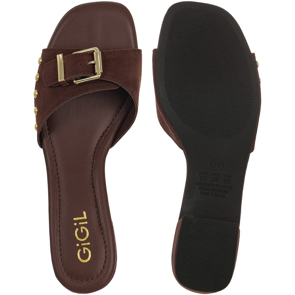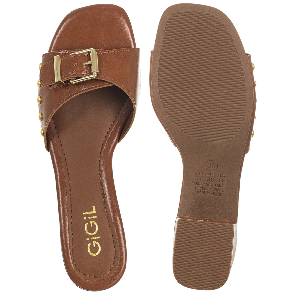 Tamanco Feminino Mule Fivela e Tachas Metalizado Salto Bloco Bico Quadrado Confortável GiGiL