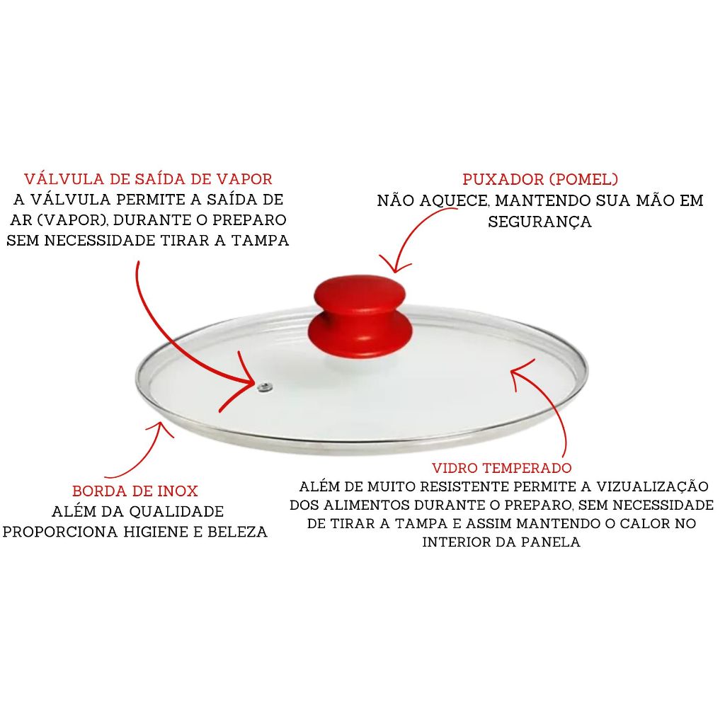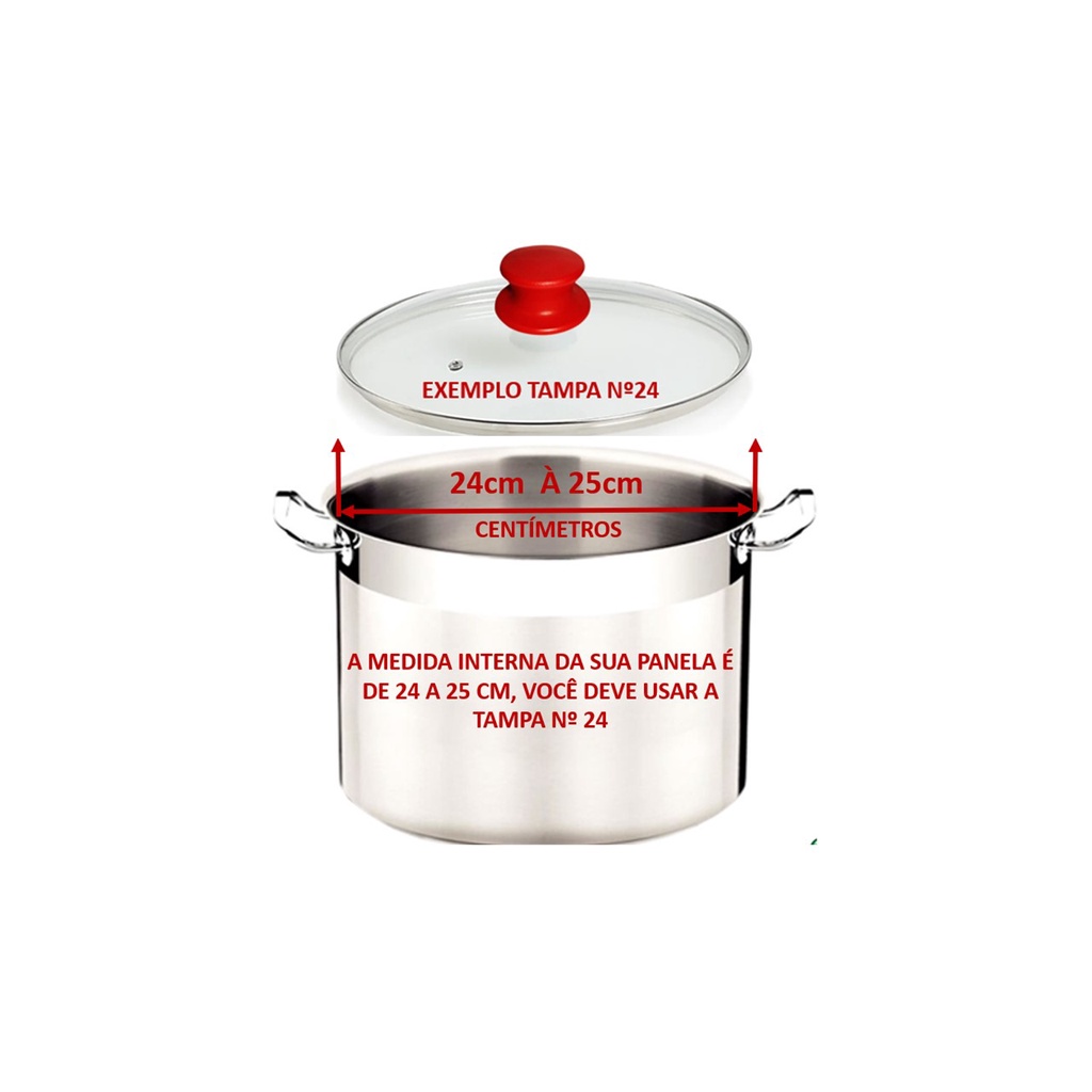 Tampa De Vidro Temperado - Para Panela e Frigideira Premium Avulsa 16-18 -20-22-24-26-28-30-32-36 cm