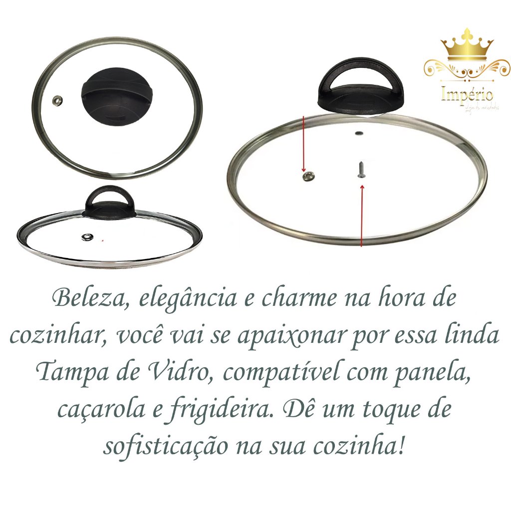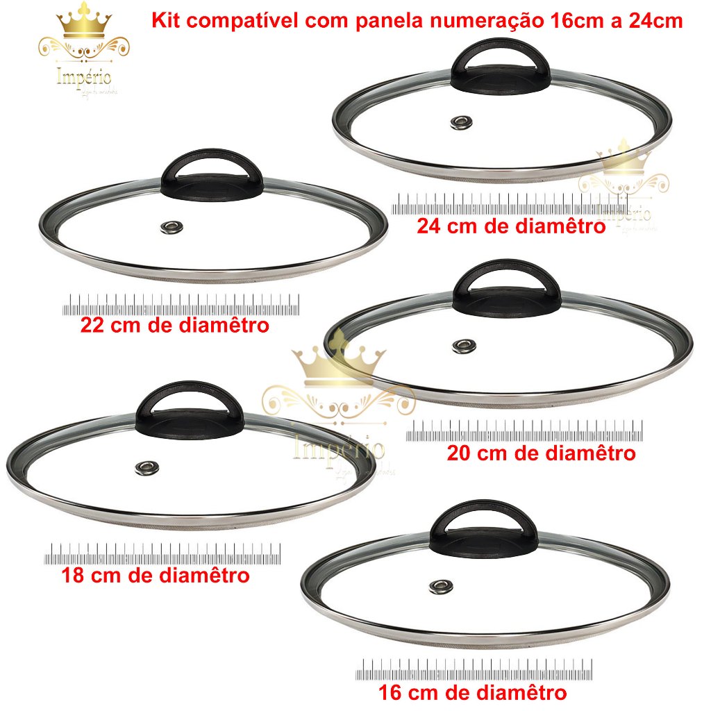 Tampa de Vidro Temperado Com Borda de Aço Inox Com Puxador Nº16 Nº18 Nº20 Nº22 Nº24 Nº26 Nº28 Nº30 Panela Frigideira