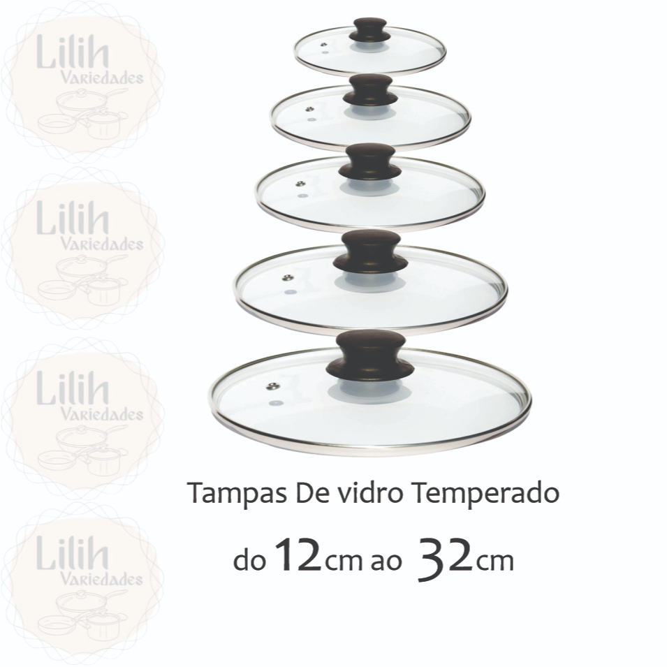 Tampa de Vidro Temperado Panela com Pomel Puxador UNIDADE tamanhos 12 ao 32
