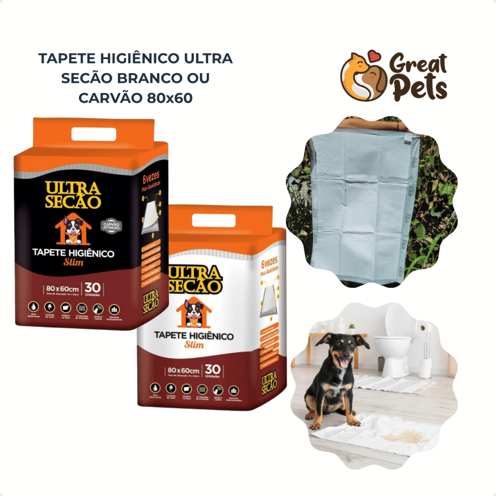 Tapete Higiênico Cachorro Cão Branco/Carvão Ativado 80x60 30un Fralda Ultra Secão Slim Great Pets