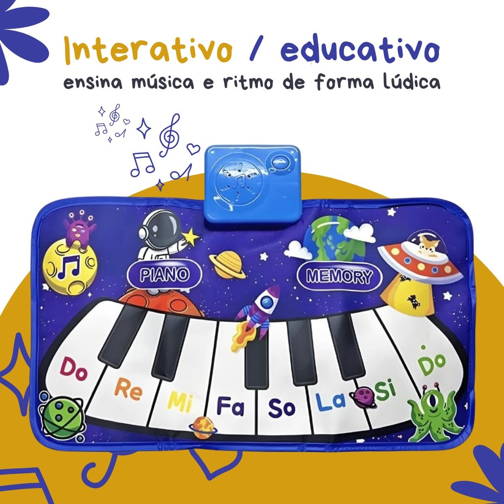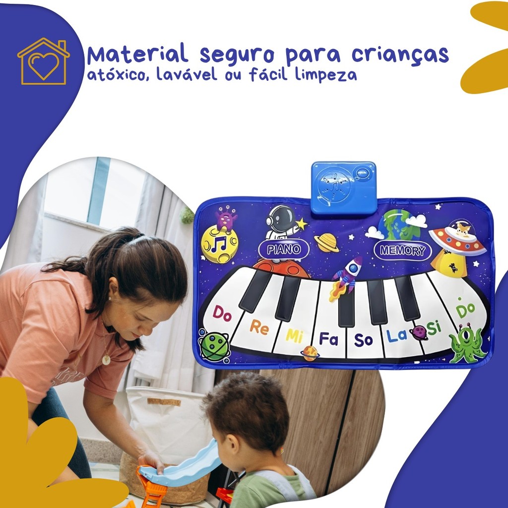 Tapete Piano Infantil Brinquedo Educativo Musical com Teclado Interativo Sons de Animais Kizumba