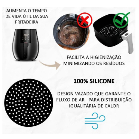 Tapete Protetor Silicone Para Air Fryer Fritadeira Universal Não Gruda - Redondo Ou Quadrado