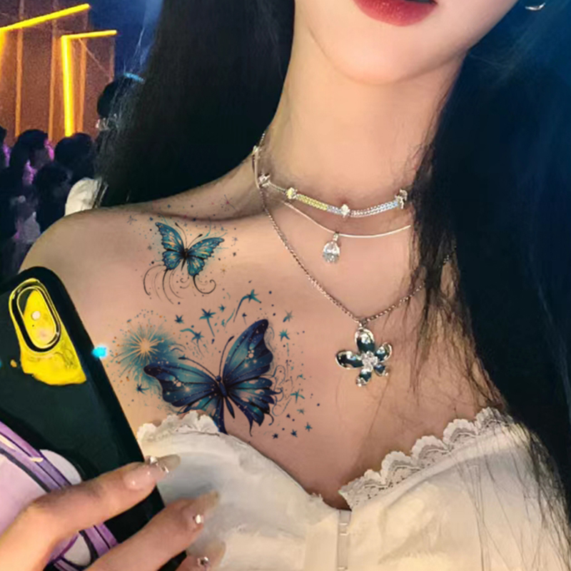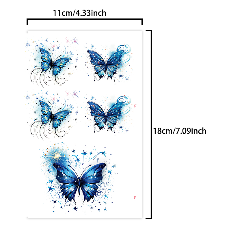 Tatuagem Temporária De Borboleta Gradiente Azul , Design Durável Não Reflexivo Para Peito E Perna