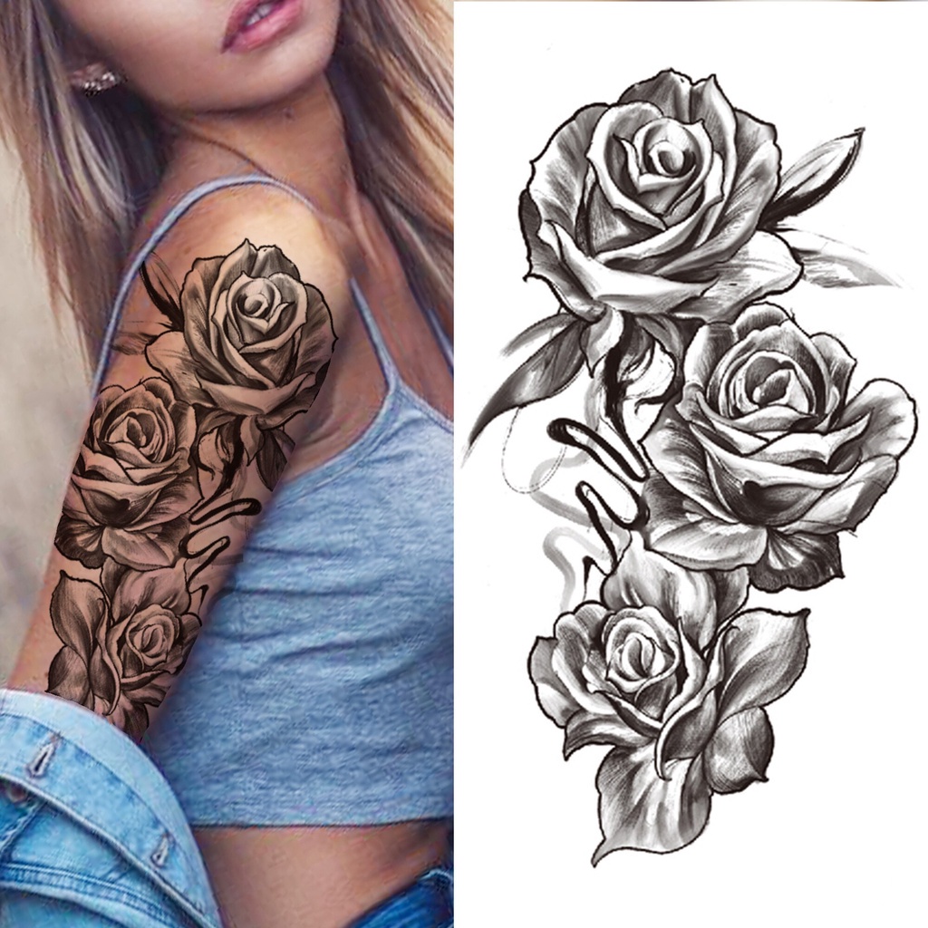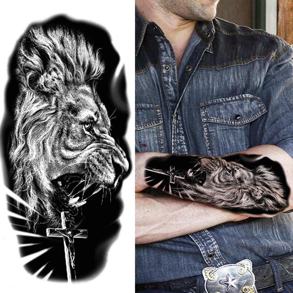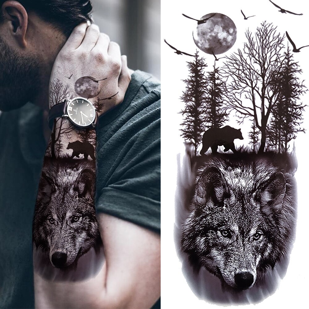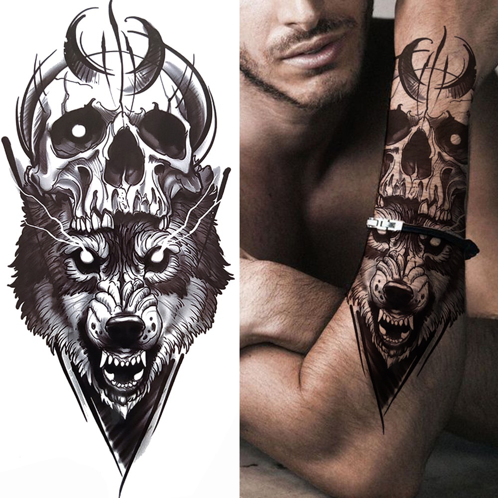 Tatuagens Temporárias De Vários Estilos-Adesivo À Prova D'água De Lobo Tigre E Caveira Da Morte , Design Animal Preto Pa