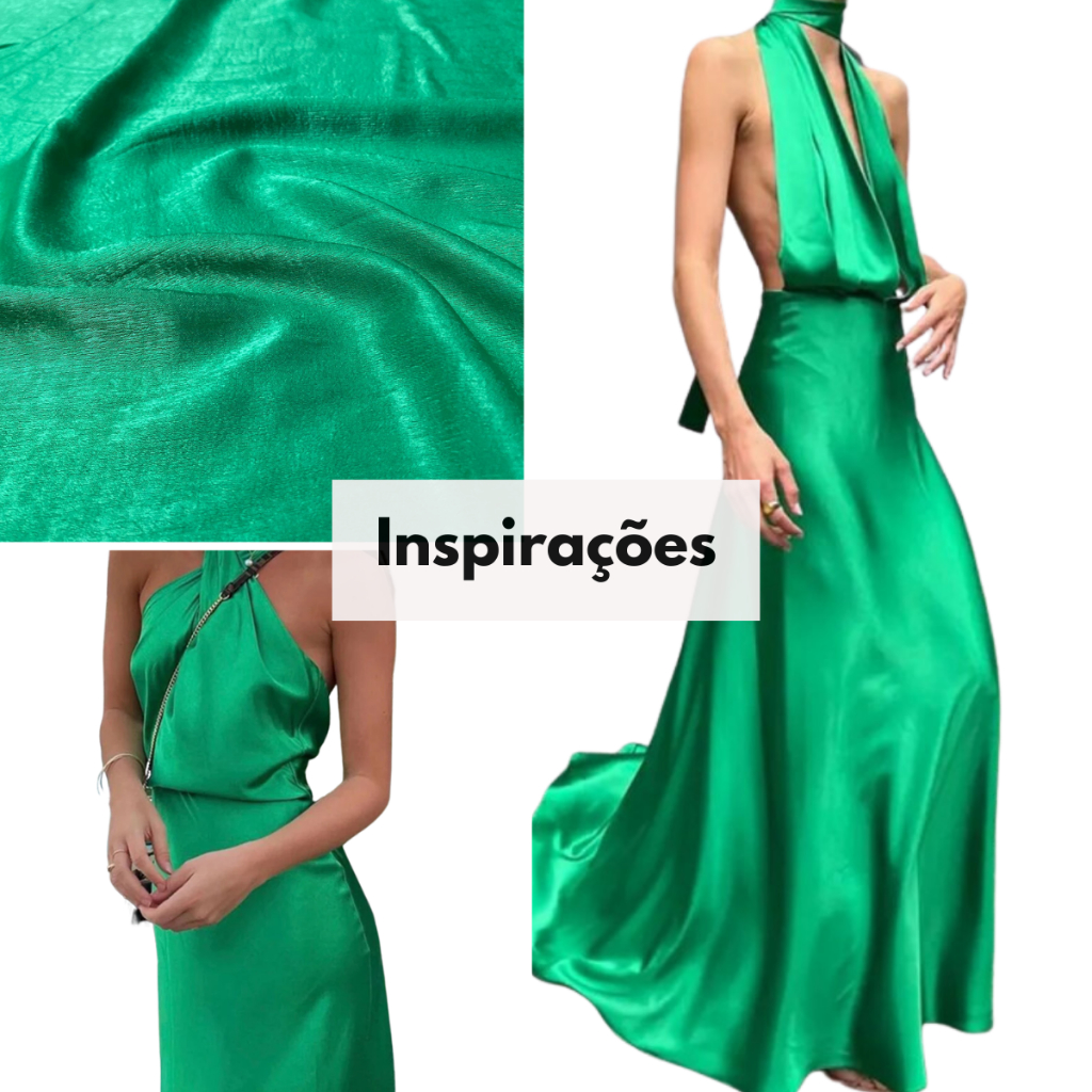 Tecido Seda Lisa Gloss Verde 1,50m - Para Roupas Femininas