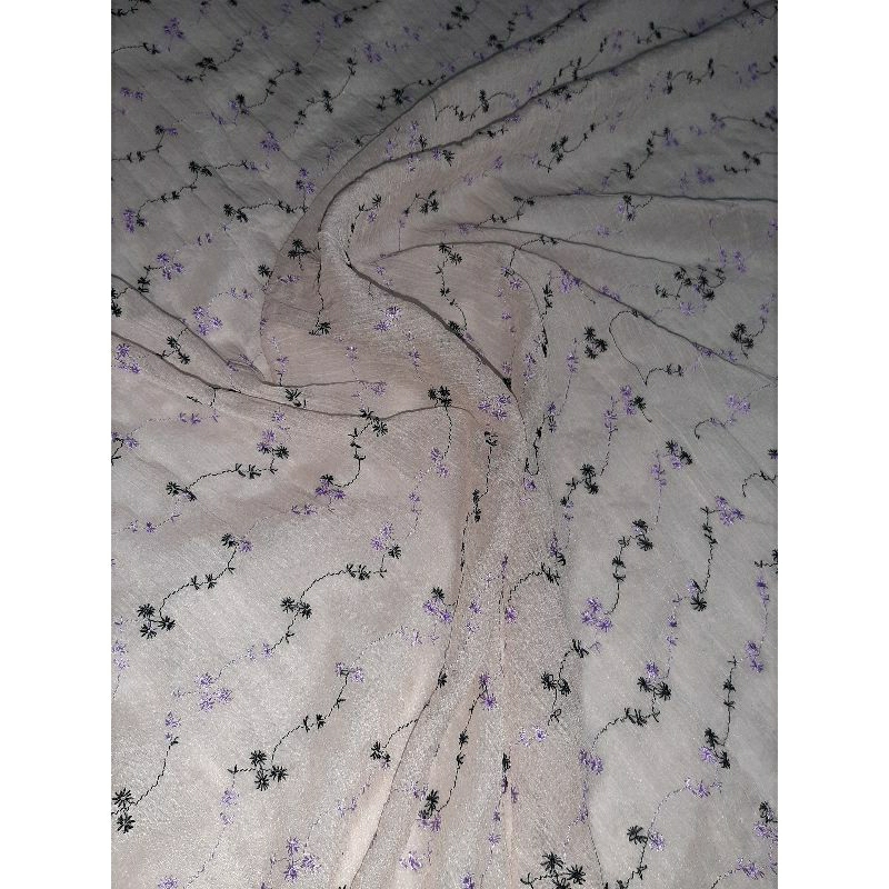 Tecido chiffon transparente bordado com movimento 1 MT por 1.40 mts