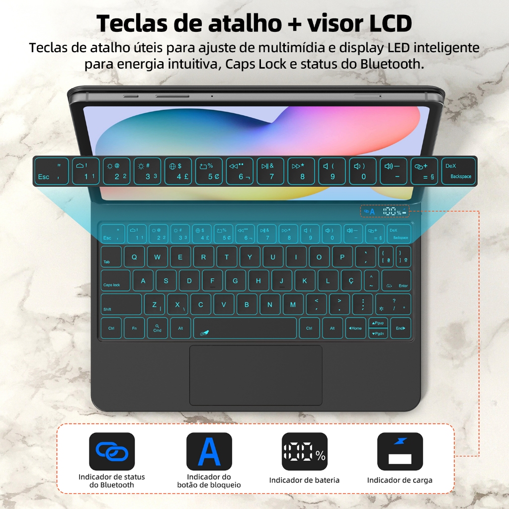Teclado Bluetooth BETTDOW Samsung S6 Lite com capa magnética removível, Bluetooth e tela LCD (tablet não incluído)