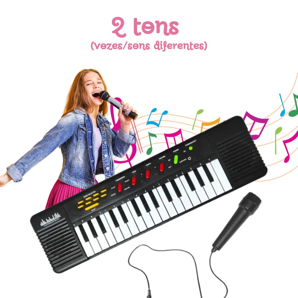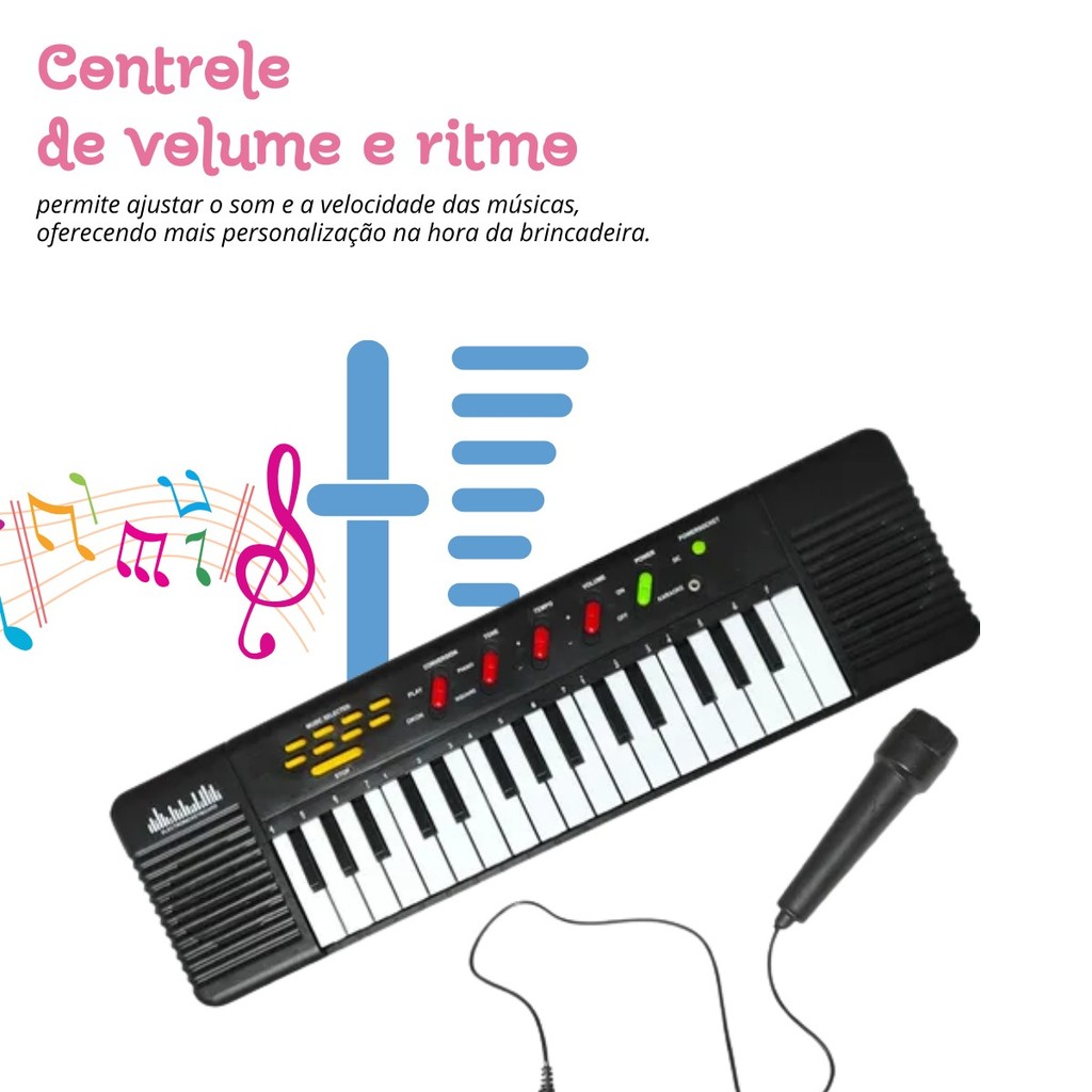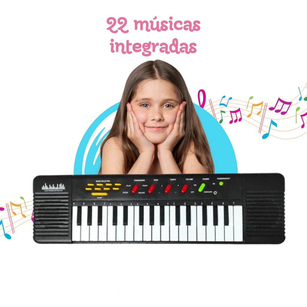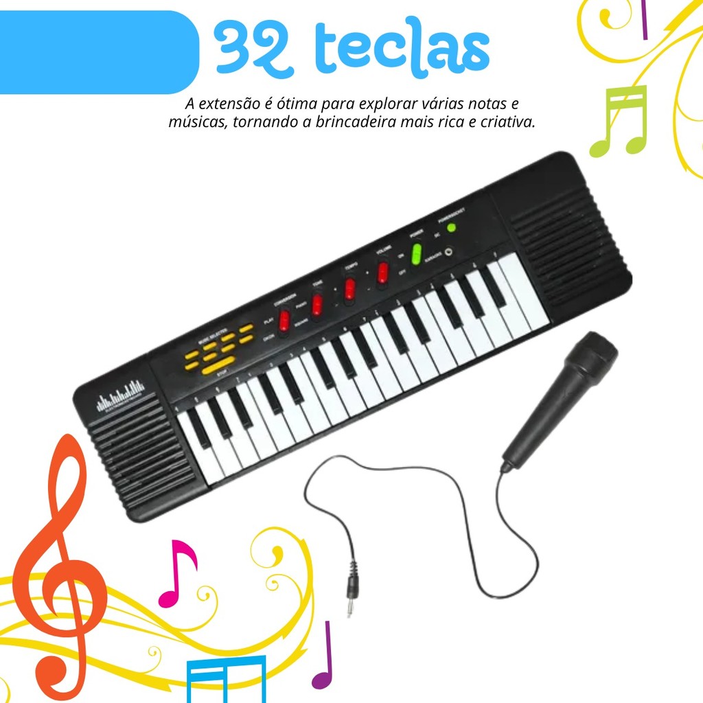 Teclado Infantil 32 Teclas Com Microfone Karaokê Brinquedo Crianças Musical Educativo Kizumba