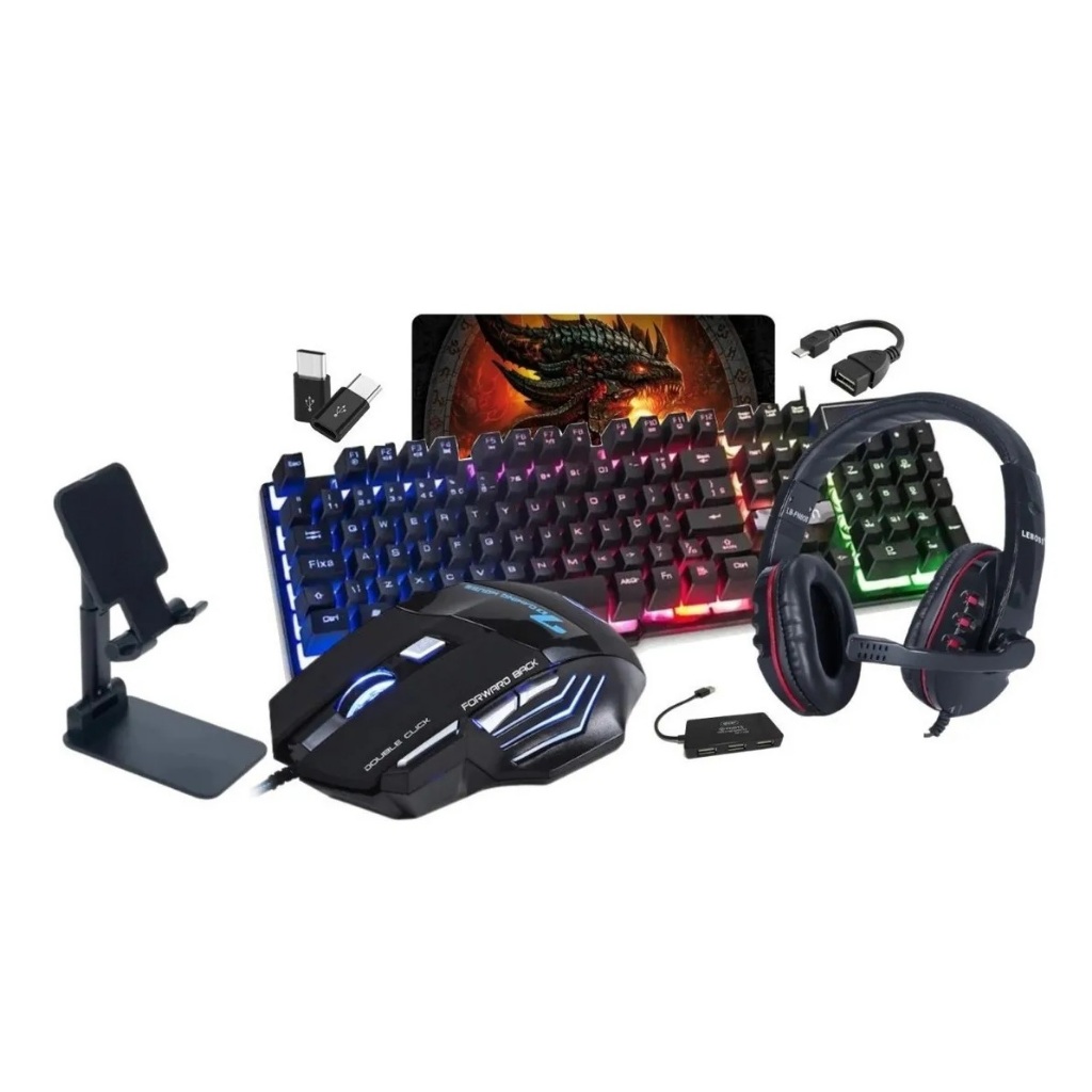 Teclado Led E Mouse Gamer Pc + Kit Celular Mobilador + Headset