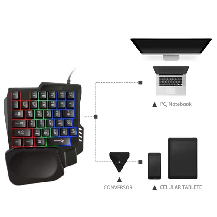 Teclado Semi Mecanico Gamer Single Hand Uma Mão Pc Celular