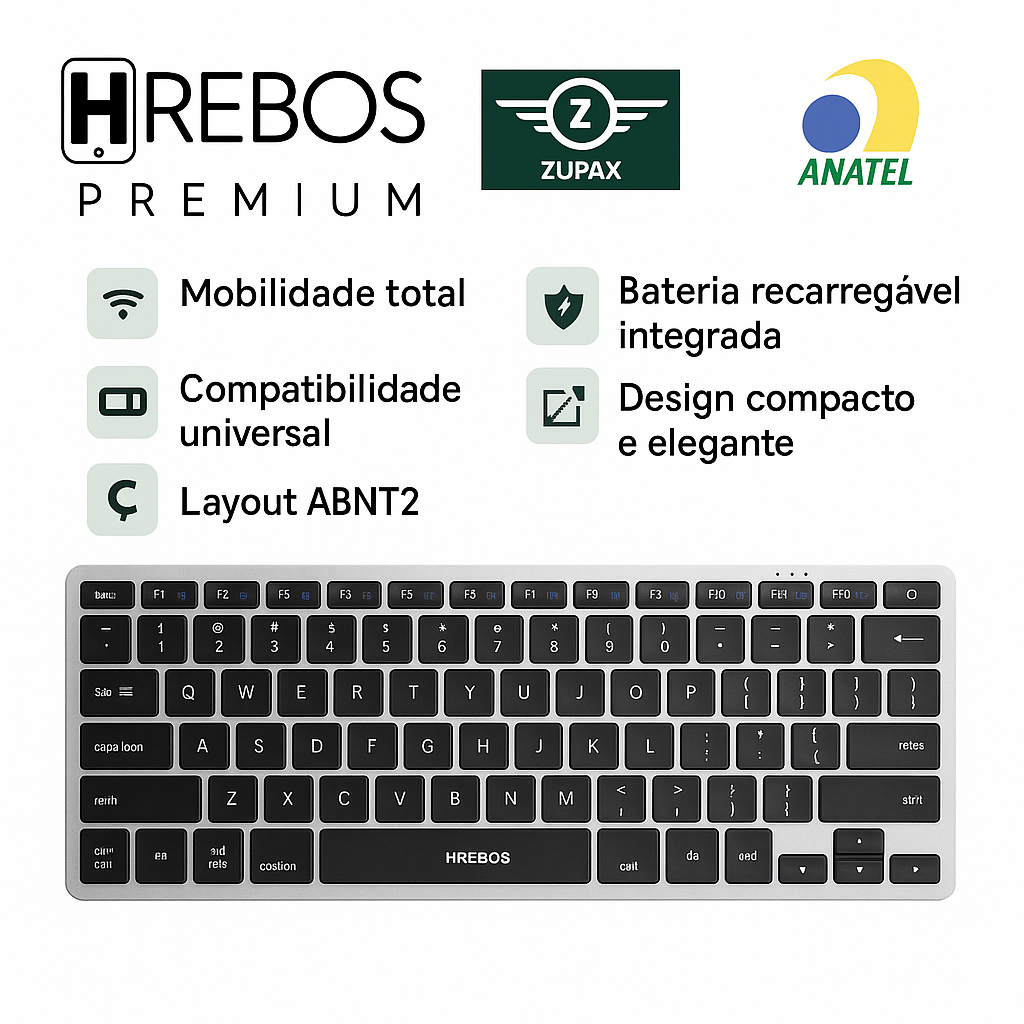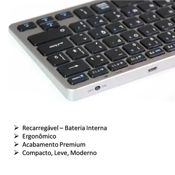 Teclado Wireless Bluetooth Recarregável | Multiuso Celular, Tablet e PC | Android, iOS, Windows, Mac