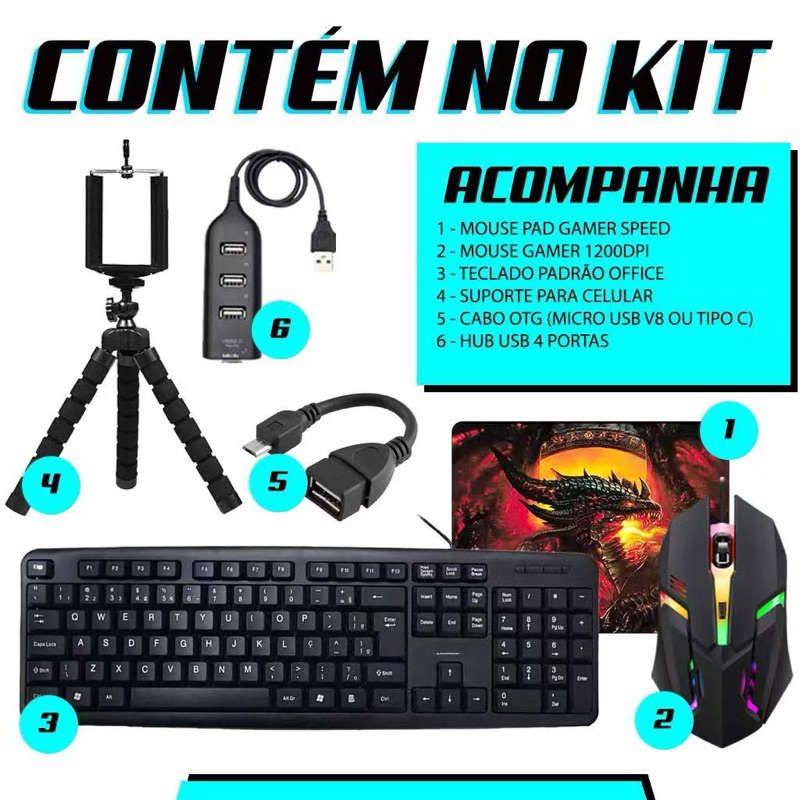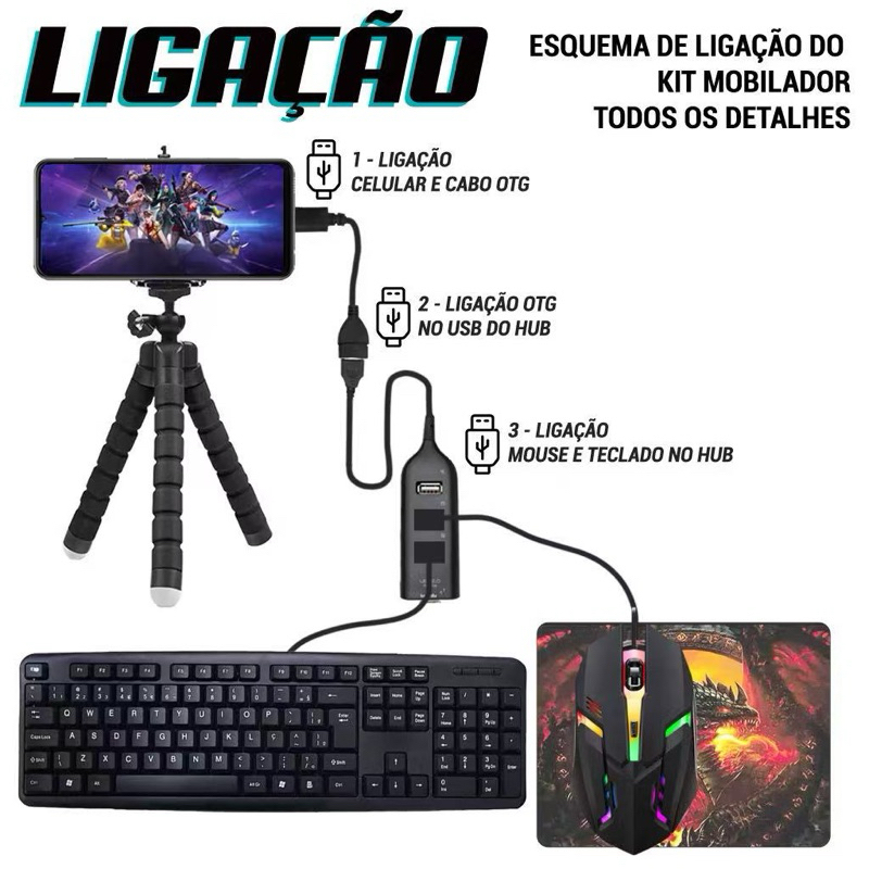 Teclado e Mouse Kit Mobilador FF Gamer Completo Mais Barato Menor Preço Para Celular P/