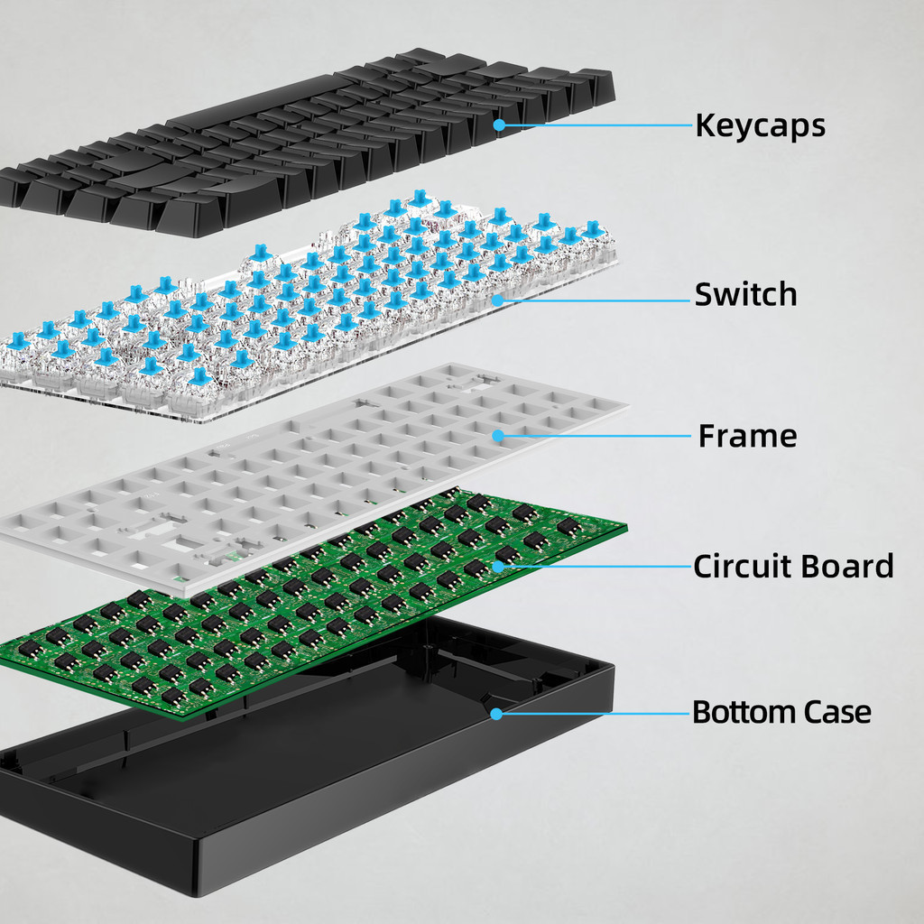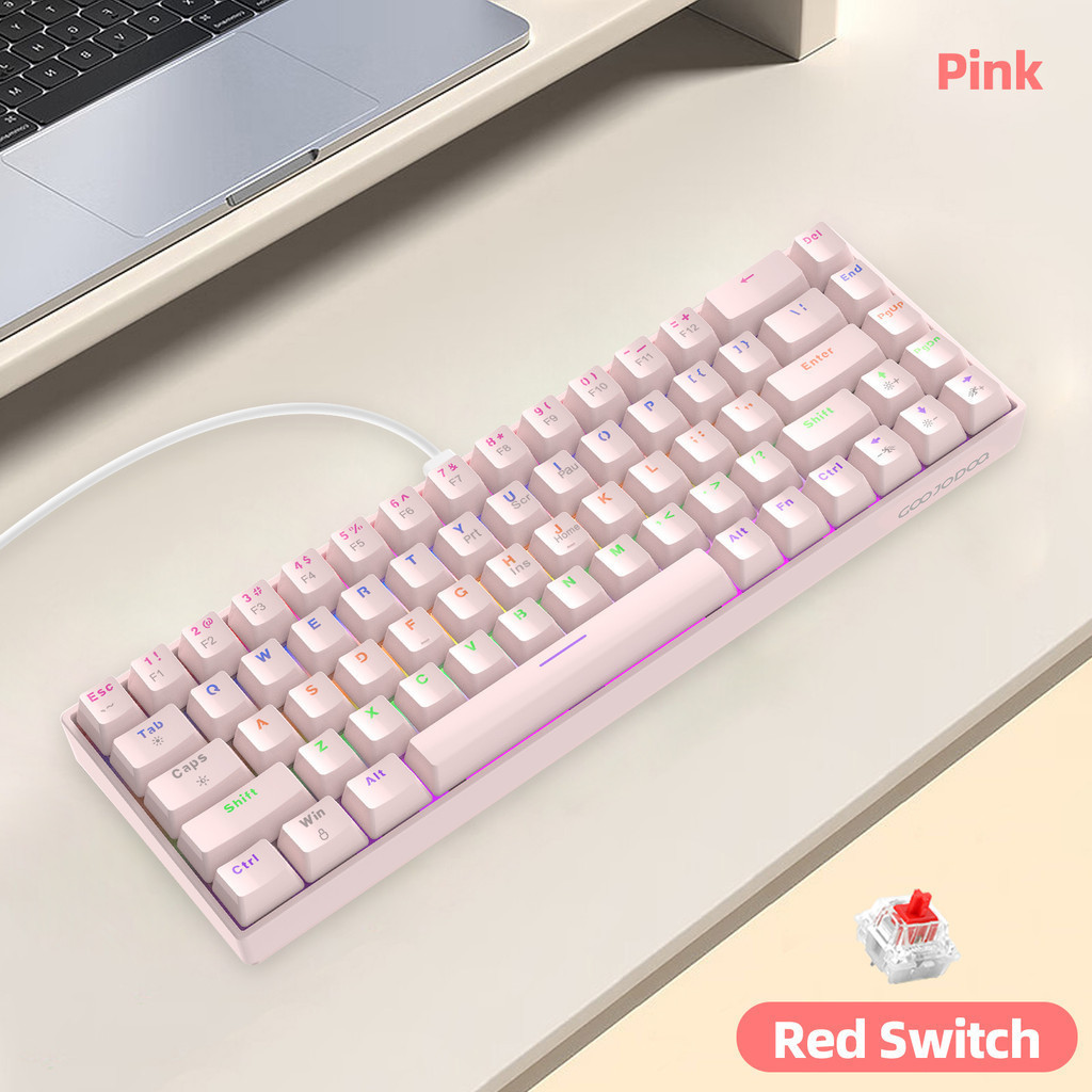 Teclado mecânico com fio GOOJODOQ de 68 teclas, 3 tipos de interruptores mecânicos disponíveis, 17 modos de iluminação