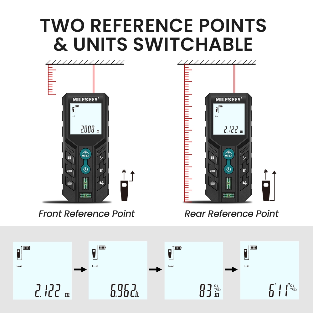 Telêmero Laser Mileseey D2 100m Medidor De Distância Digital Com 2 Níveis De Bolhas M/In/Ft Unidade