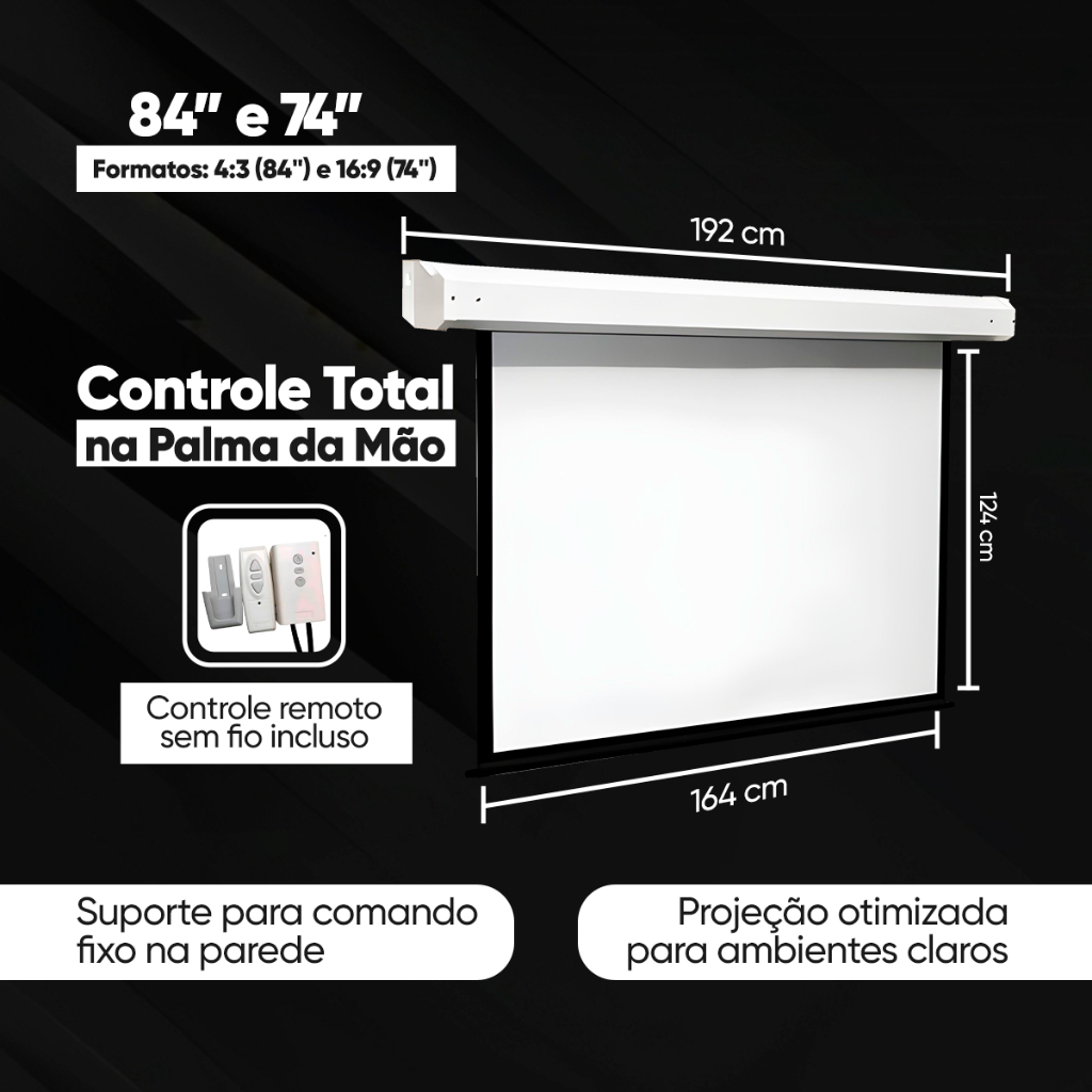 Tela De Projeção Elétrica 84 Polegadas 220v Retratil Com Controle Remoto Automação Com Alexa