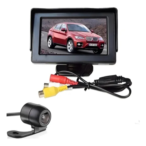 Tela Fixa Monitor Veicular 4.3 Rca + Câmera De Ré Borboleta Preto