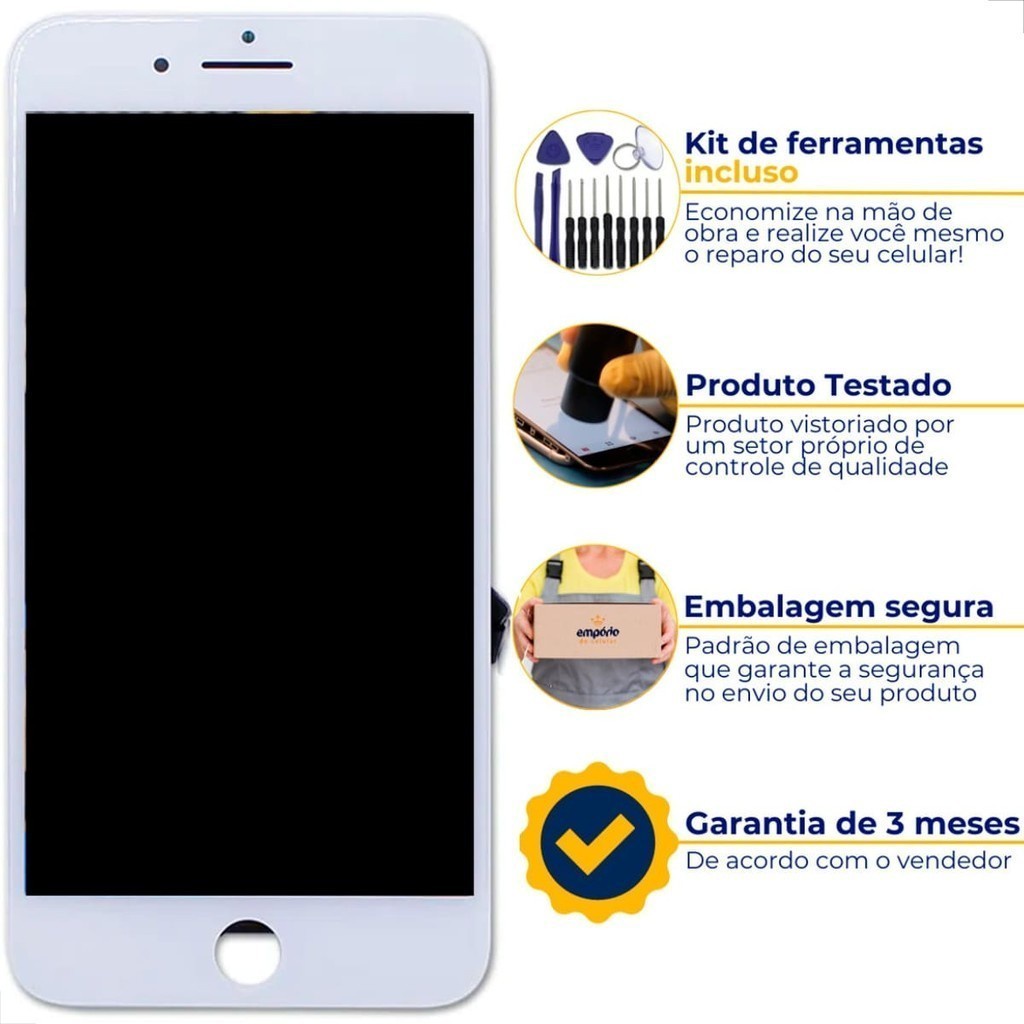 Tela Iphone 8 8G Compatível Apple Display Frontal Touch Empório do Celular Standard + Kit instalação ferramentas
