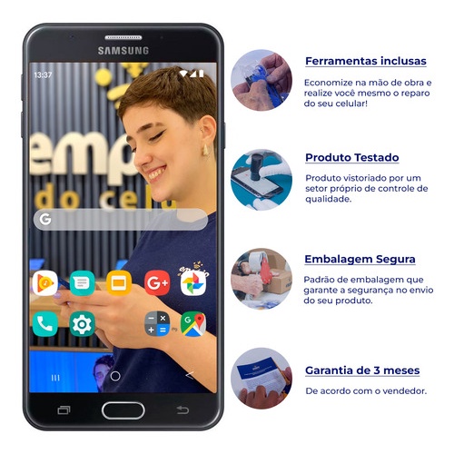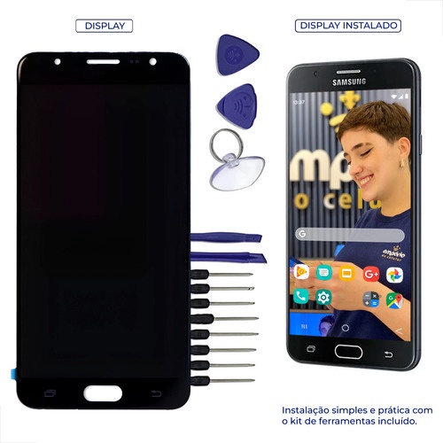 Tela J7 Prime Galaxy Compatível Samsung Display Aro Frontal Empórido do Celular Standard + Kit instalação ferramentas