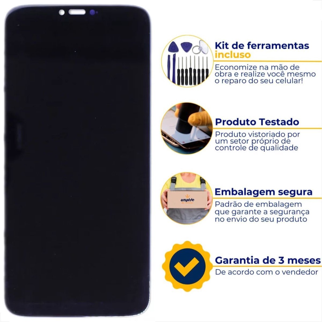 Tela Moto G7 Power Compatível Motorola Display Frontal Empório do Celular Standard + Kit ferramentas