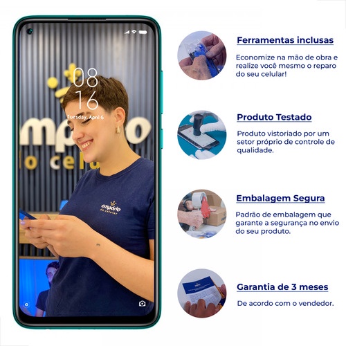 Tela Xiaomi MI Note 9 Compatível Redmi Display Frontal Empórido do Celular Standard + Kit ferramentas