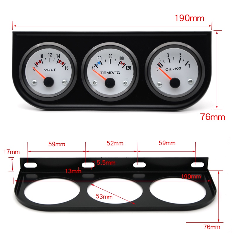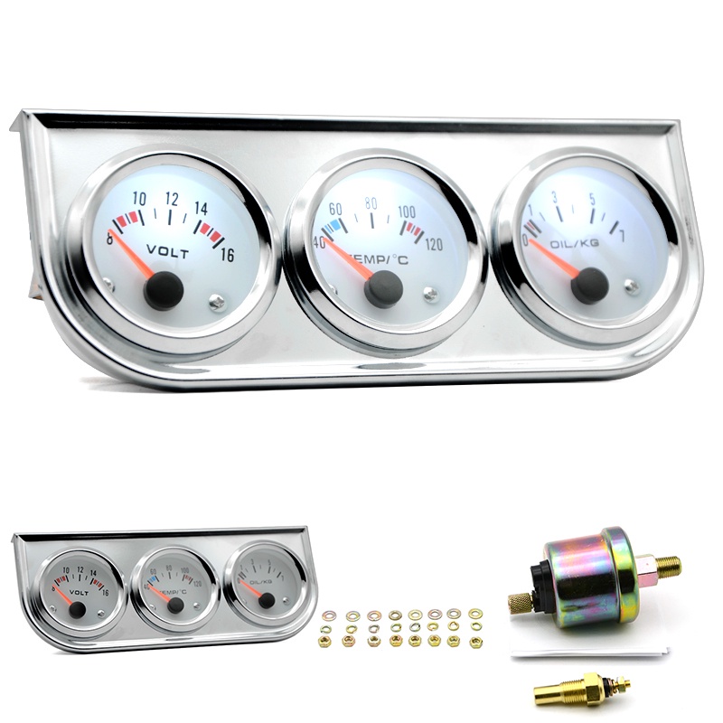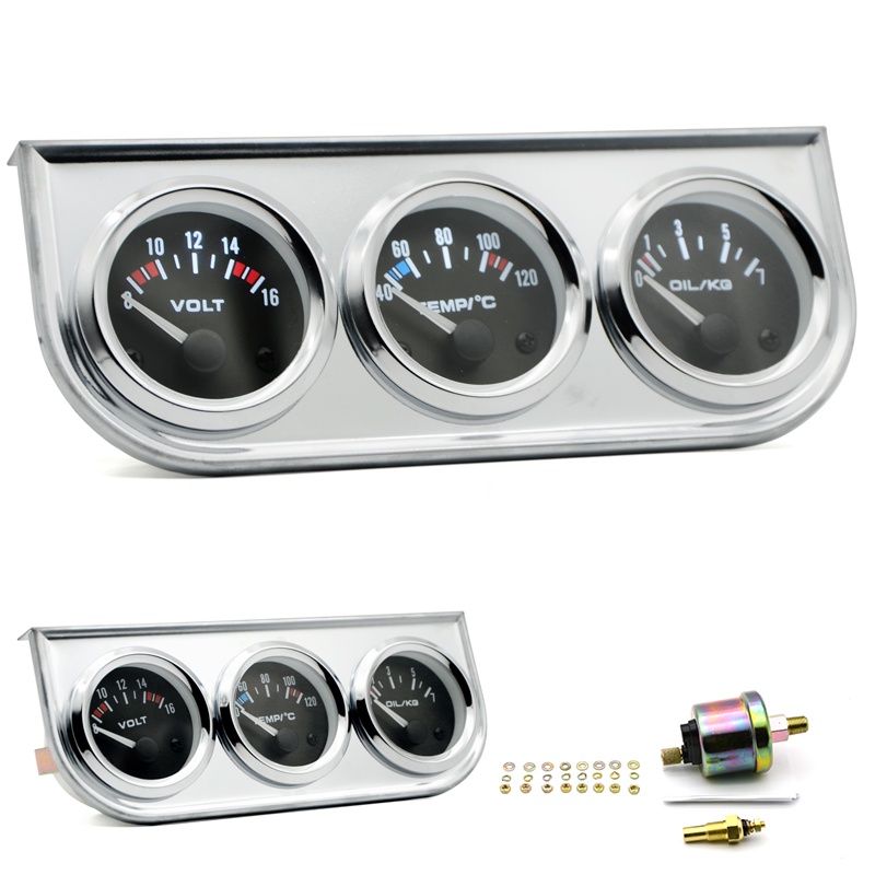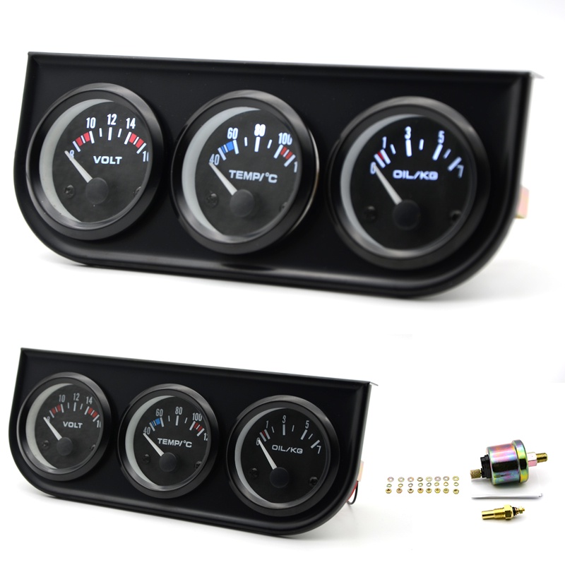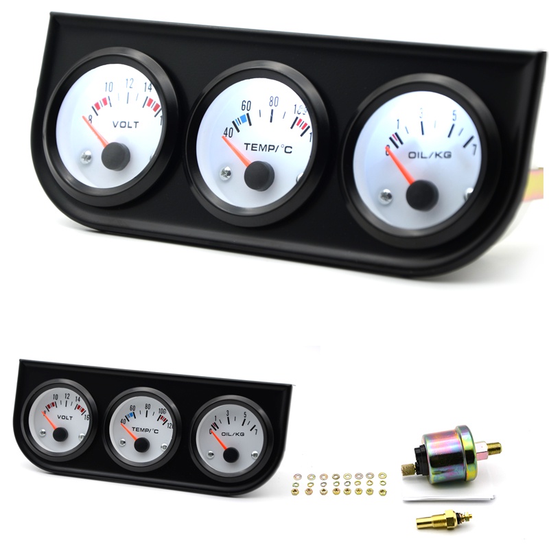 Temperatura Da Água Medidor De Pressão De Óleo Volt 52mm 3 Em 1 Kit Triplo Preto/Chrome Moldura Preta/Branco Rosto Com Temp & Sensor