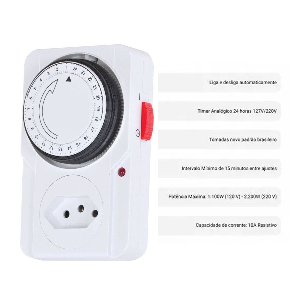 Temporizador Timer Analogico Manual 24h bivolt Programavel Liga Desliga Energia