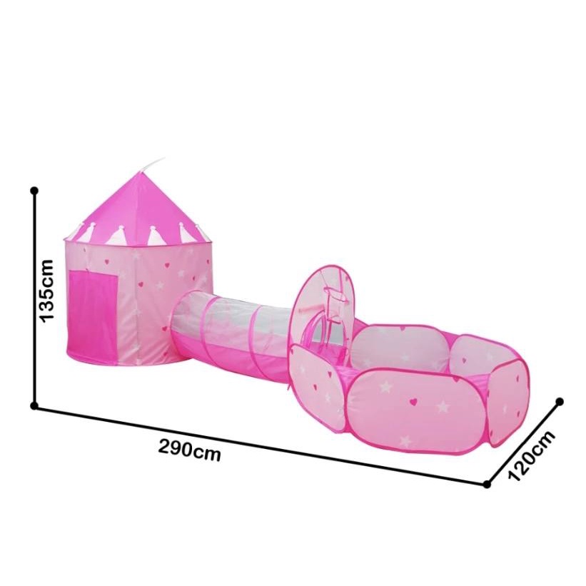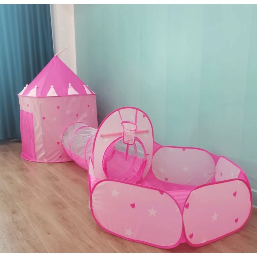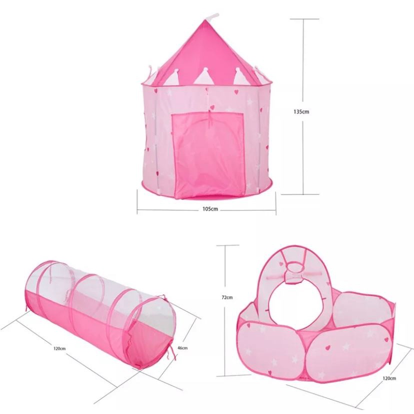 Tenda Toca Túnel 3x1 Barraca Castelinho C/ Cercadinho Piscina Bolinha e Cesta Para Basquete Infantil