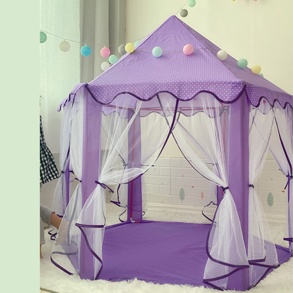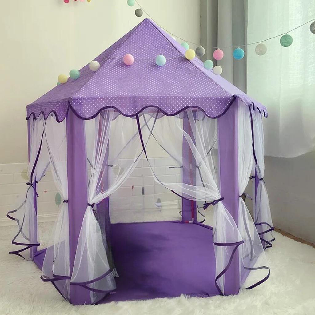 Tenda infantil castelo de princesa roxa transportável grande divertidade aventura e imaginação casinha infantil