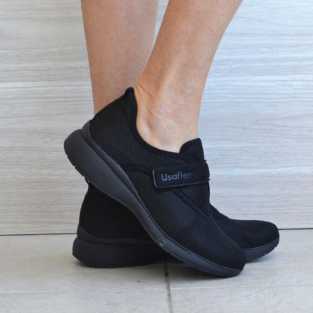 Tenis Casual Feminino Tecido Usaflex Ab6409 Preto