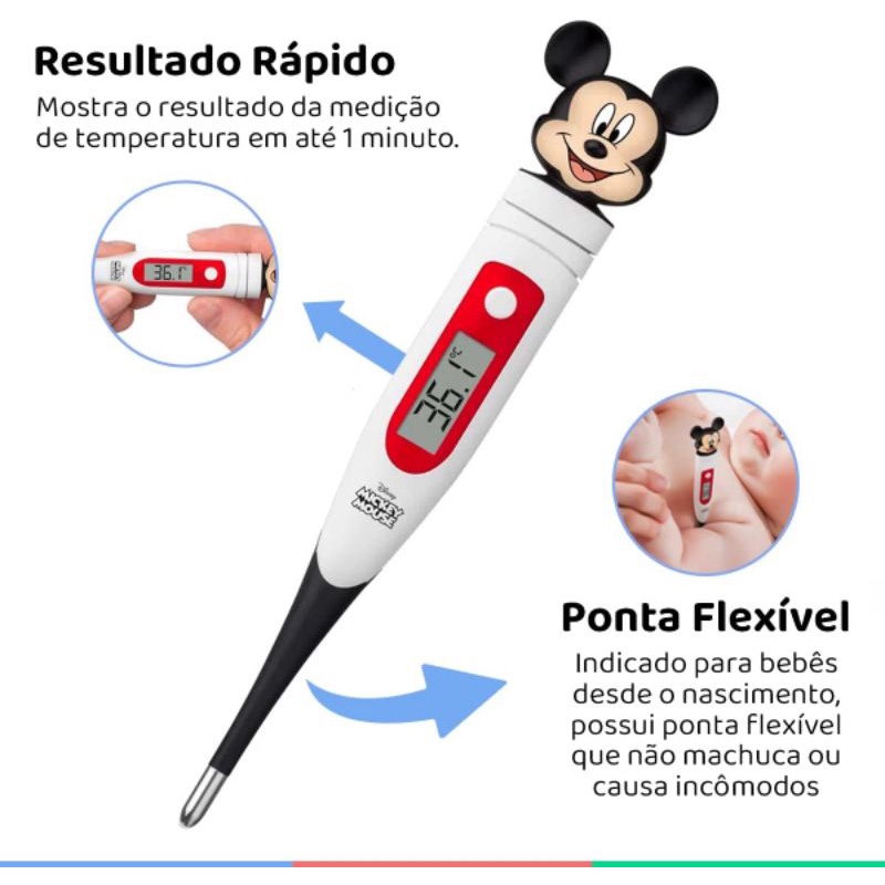 Termômetro Clínico Digital Haste Flexível infantil Visor Lcd À Prova D'água Mickey