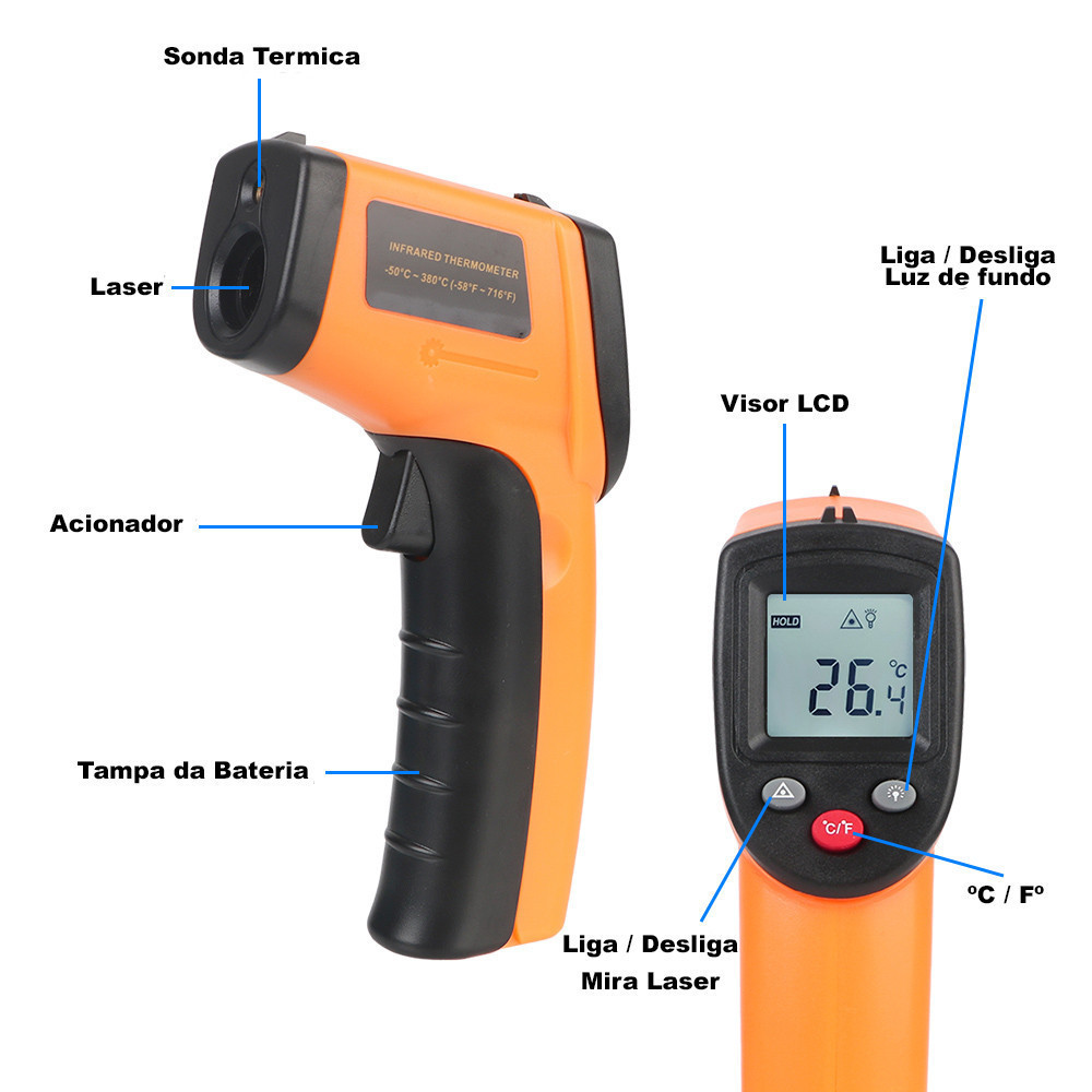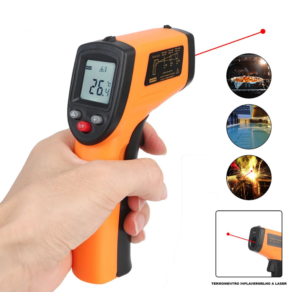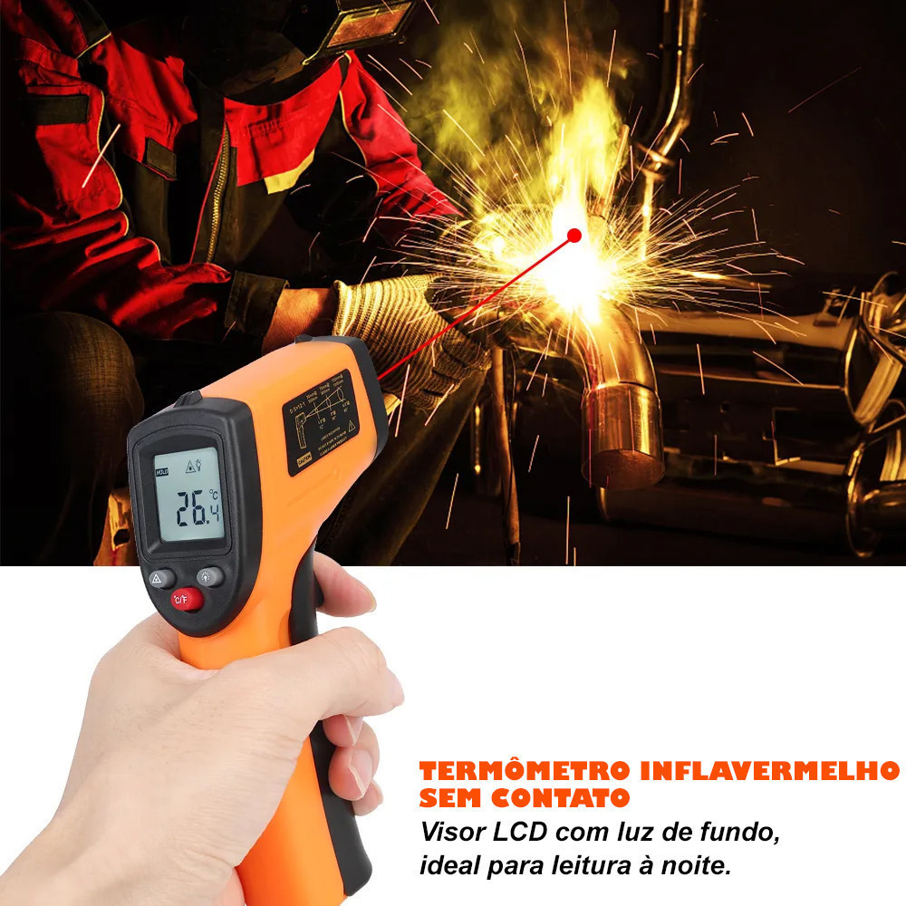 Termômetro Digital Infravermelho Laser Medição Temperatura Industrial -55ºc ~ 400ºc
