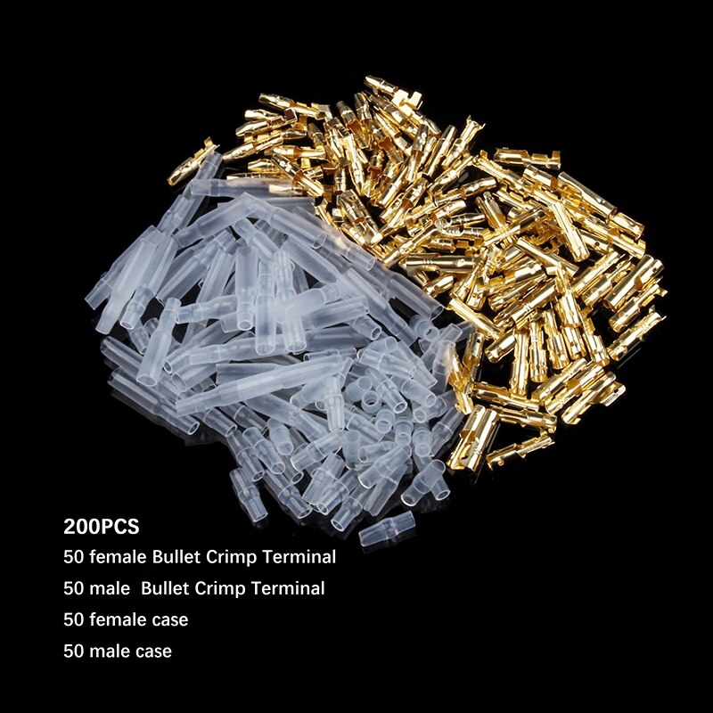 Terminais De Crimpagem De Bala , Conector De Motocicleta , Soquete Com Capa De Manga Isolante , 50 Conjuntos/200 Peças 3