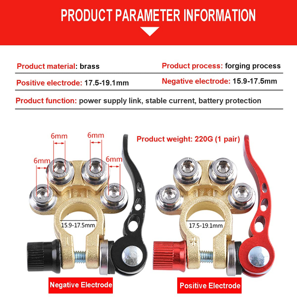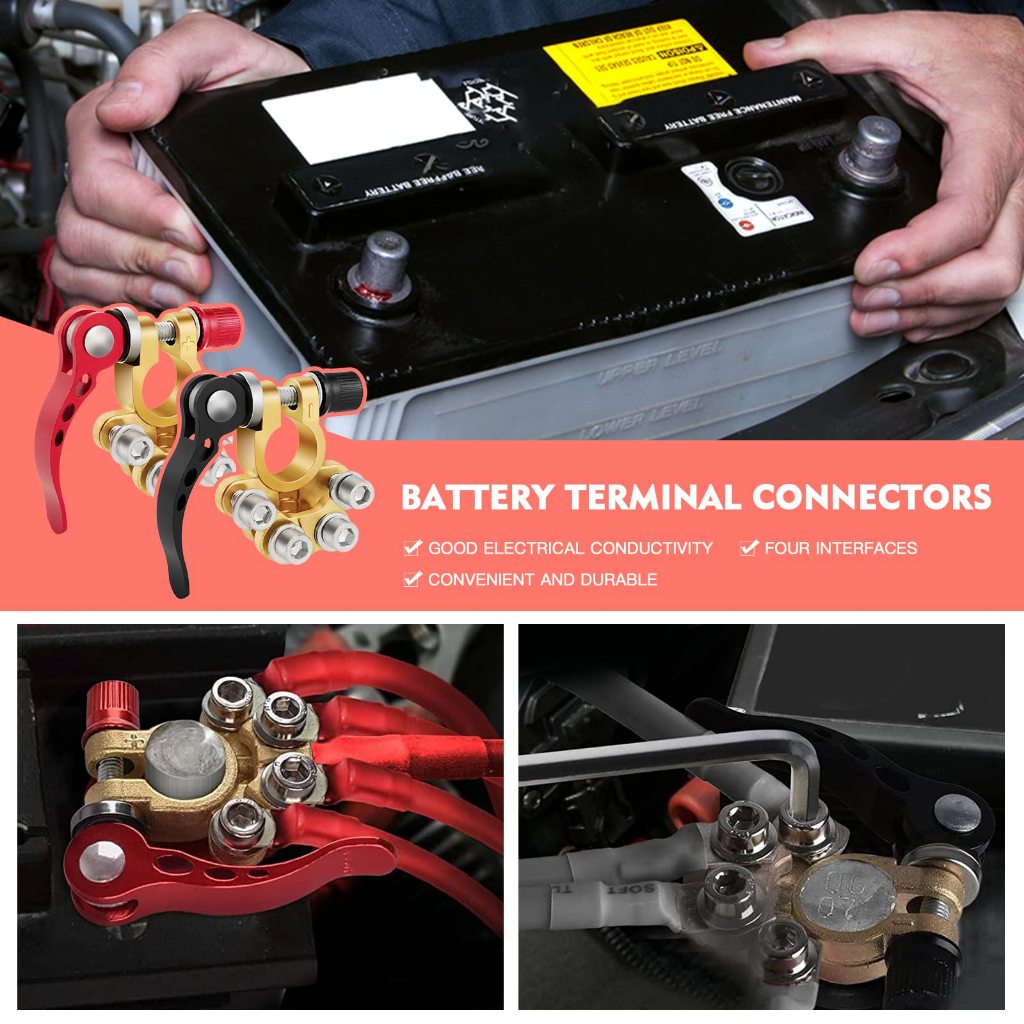 Terminais de bateria 1 Par, estudo versátil, Car Battery Terminal Connectors, 4 Way Quick Release Disconne