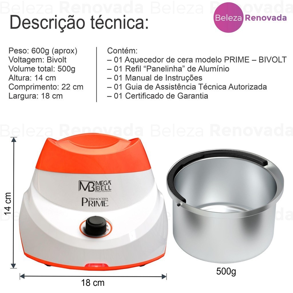 Termocera Aquecedor Cera Quente Panela Mega Bell +Refil 500G