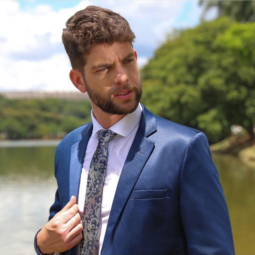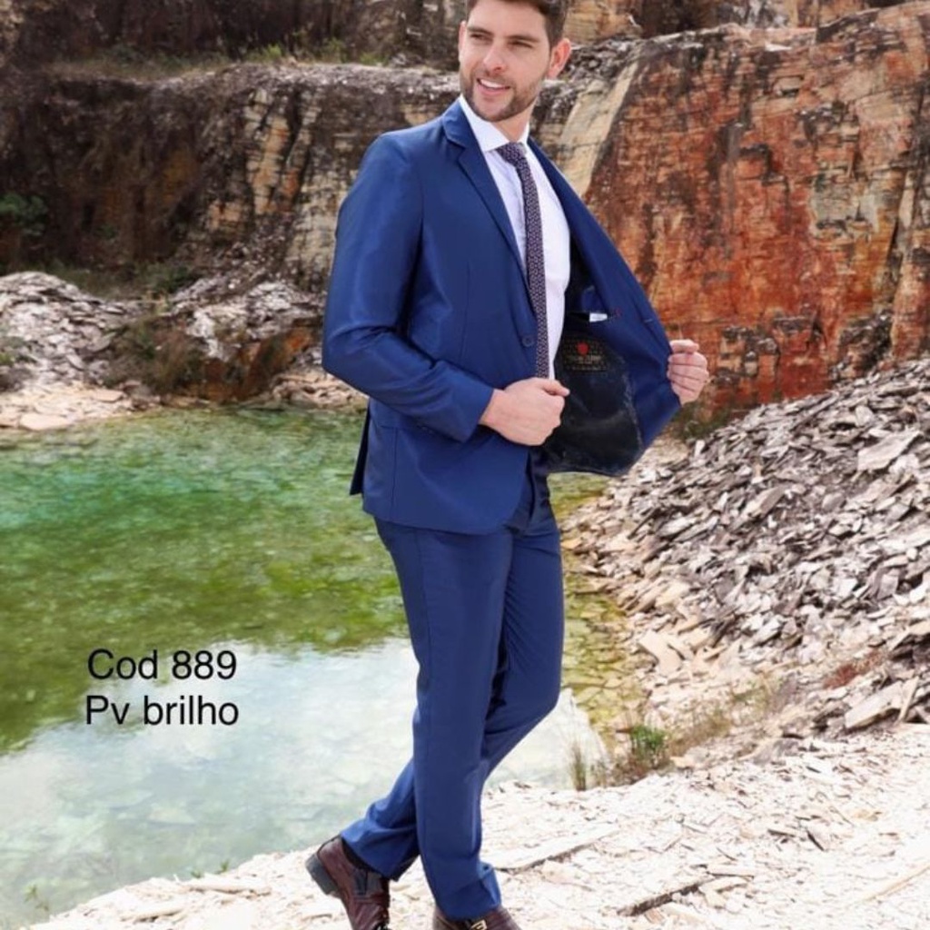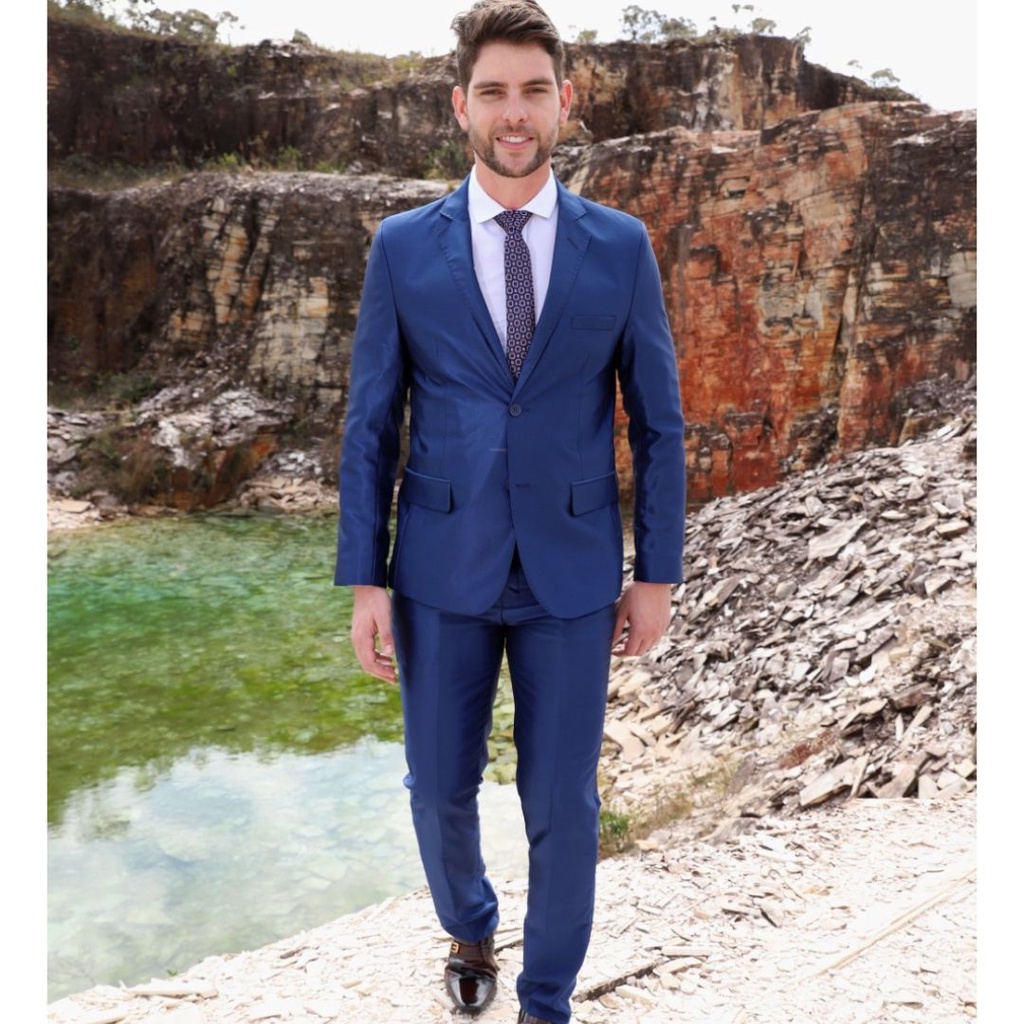 Terno Slim Fit Poliviscose Masculino Acetinado- Azul