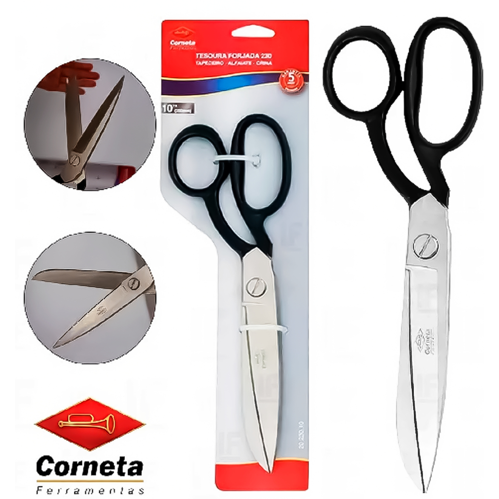 Tesoura Alfaiate Profissional Multiuso Lâmina Aço Inox Costura Tapeceiro Crina - CORNETA Original