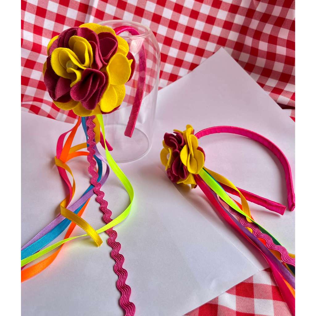 Tiara flor em feltro Cores diversas, festa de carnaval, adereços carnaval 2025