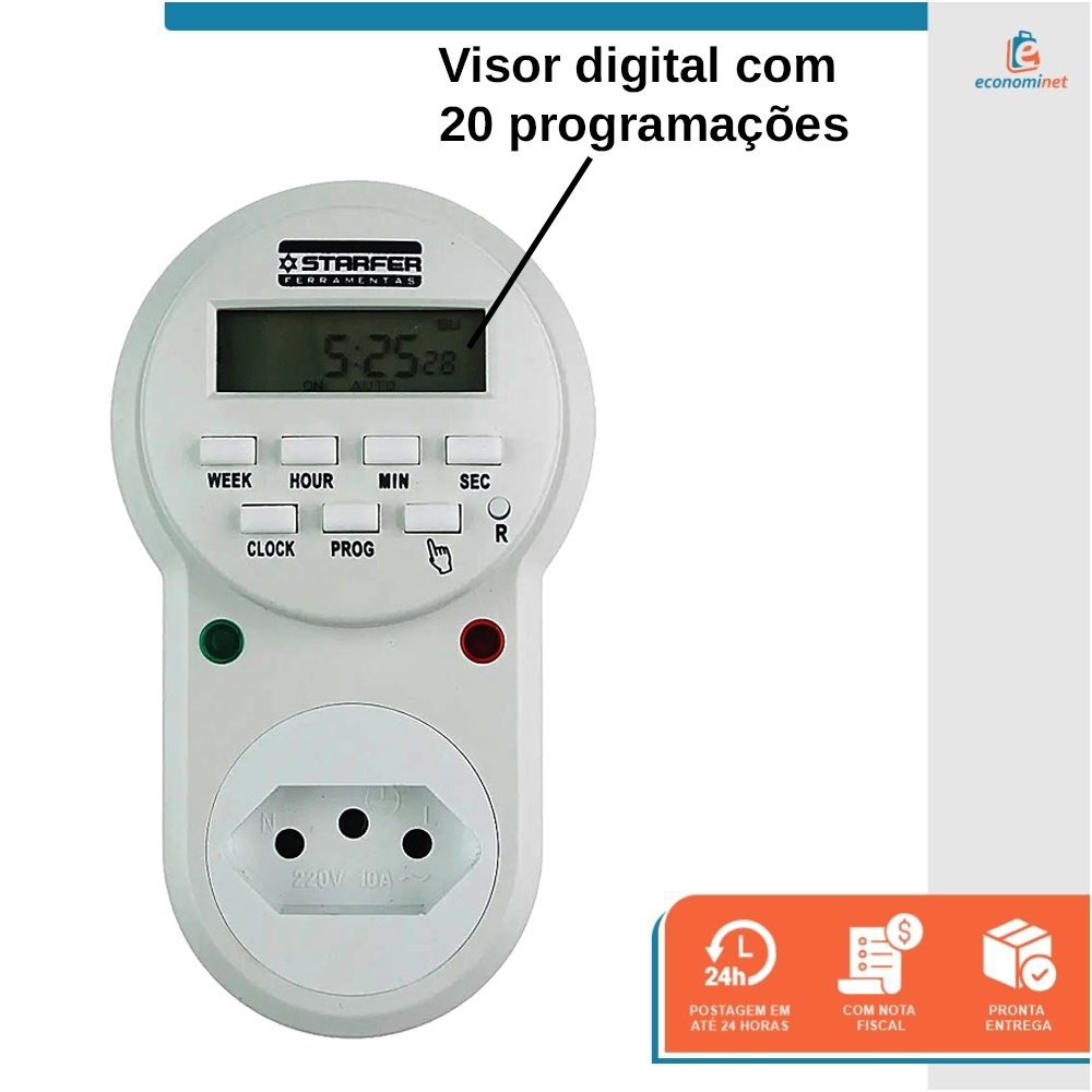 Timer Digital Temporizador de Tomada Bivolt 10A Controle Programável para Ar-Condicionado, Freezer, Geladeira e Piscina