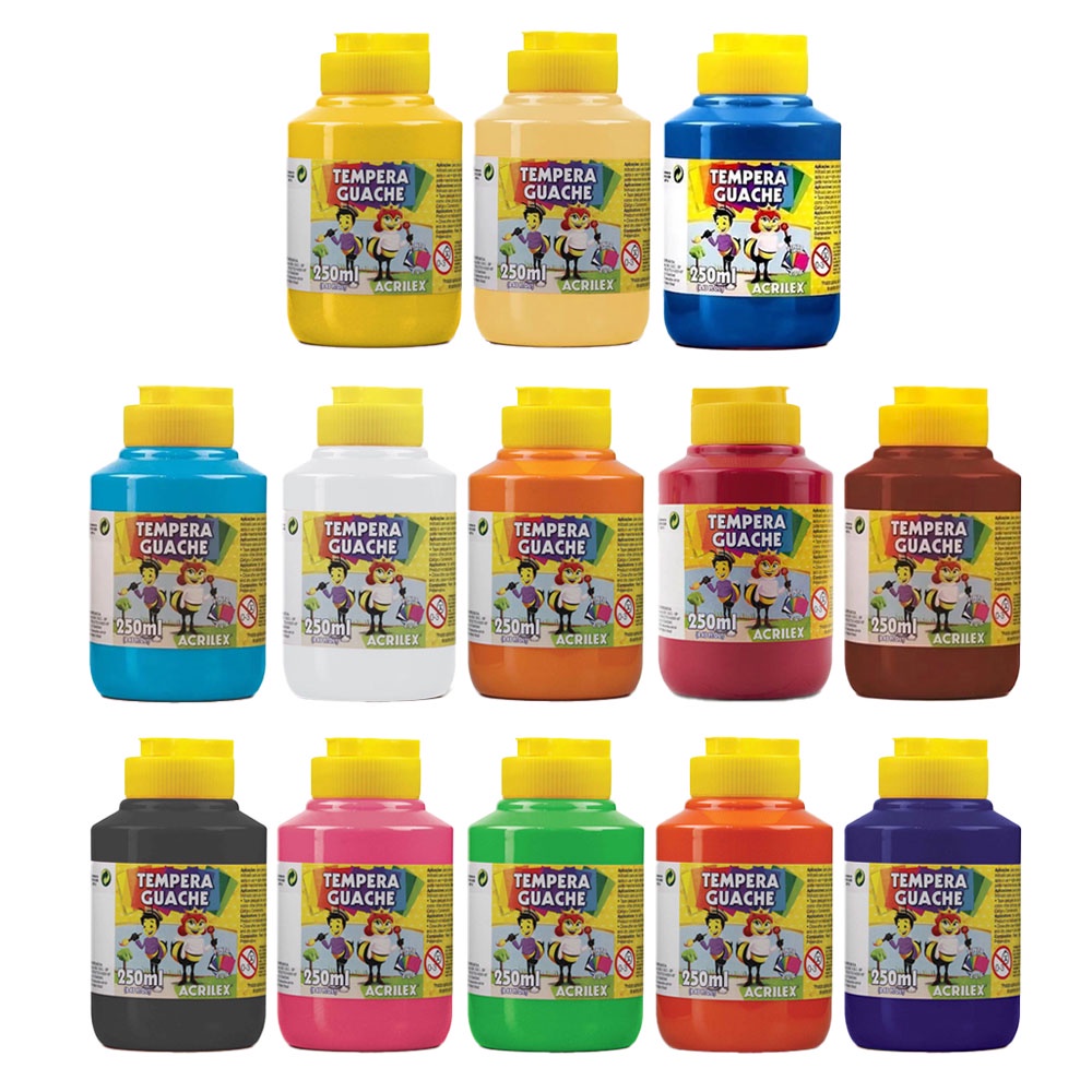 Tinta Guache Acrilex 250 ML Bico Dosador Bisnaga Colorida