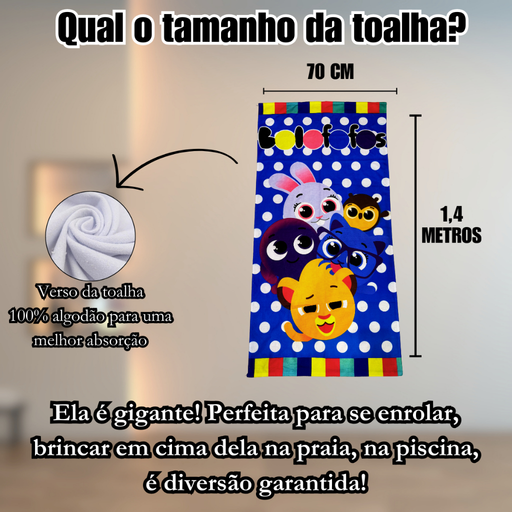 Toalha Infantil Banho Praia Algodão Grande Bolofofos Azul