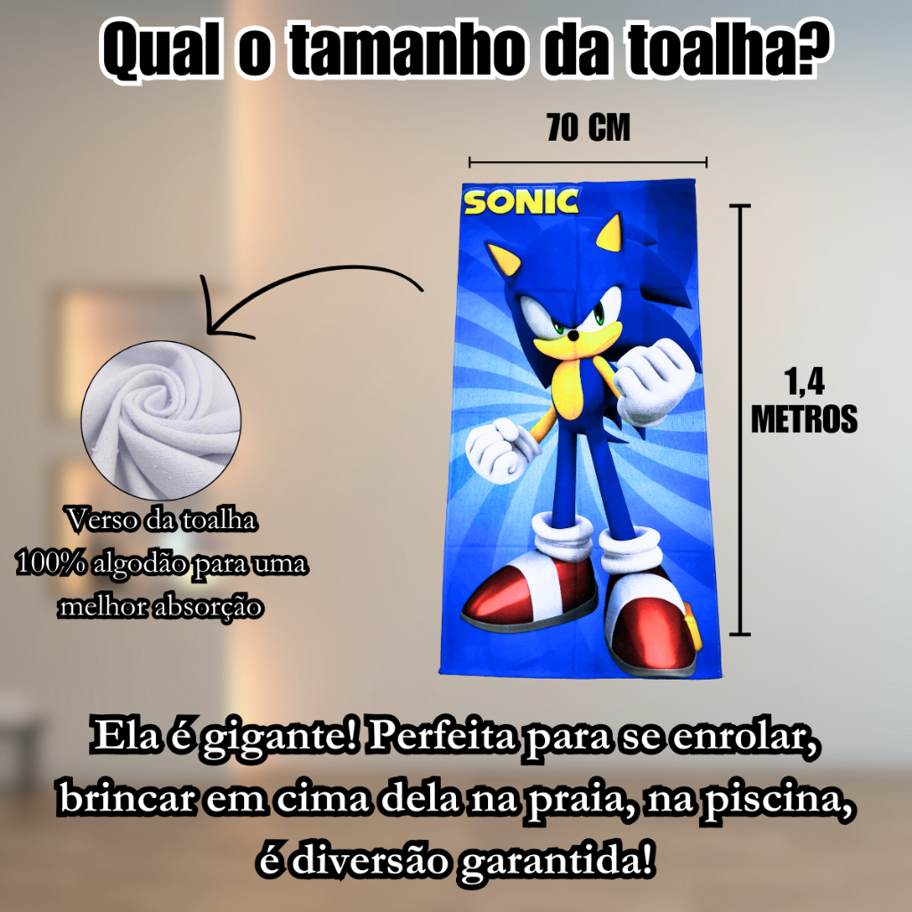 Toalha Infantil Banho Praia Algodão Grande Personagem Sonic