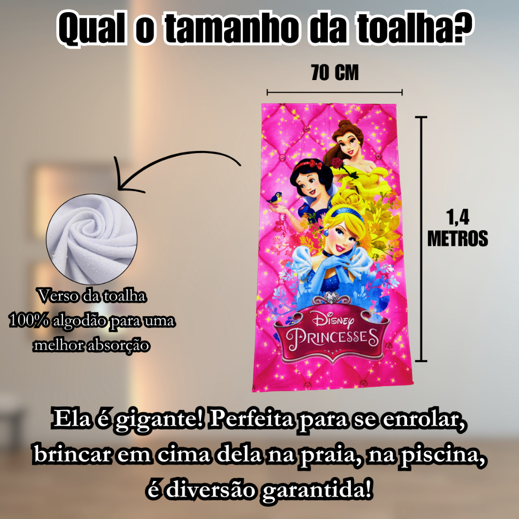 Toalha Infantil Banho Praia Algodão Grande Princesas Disney