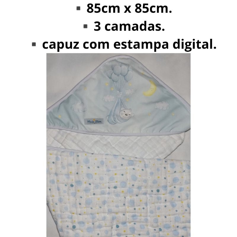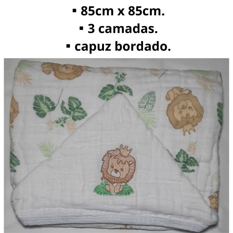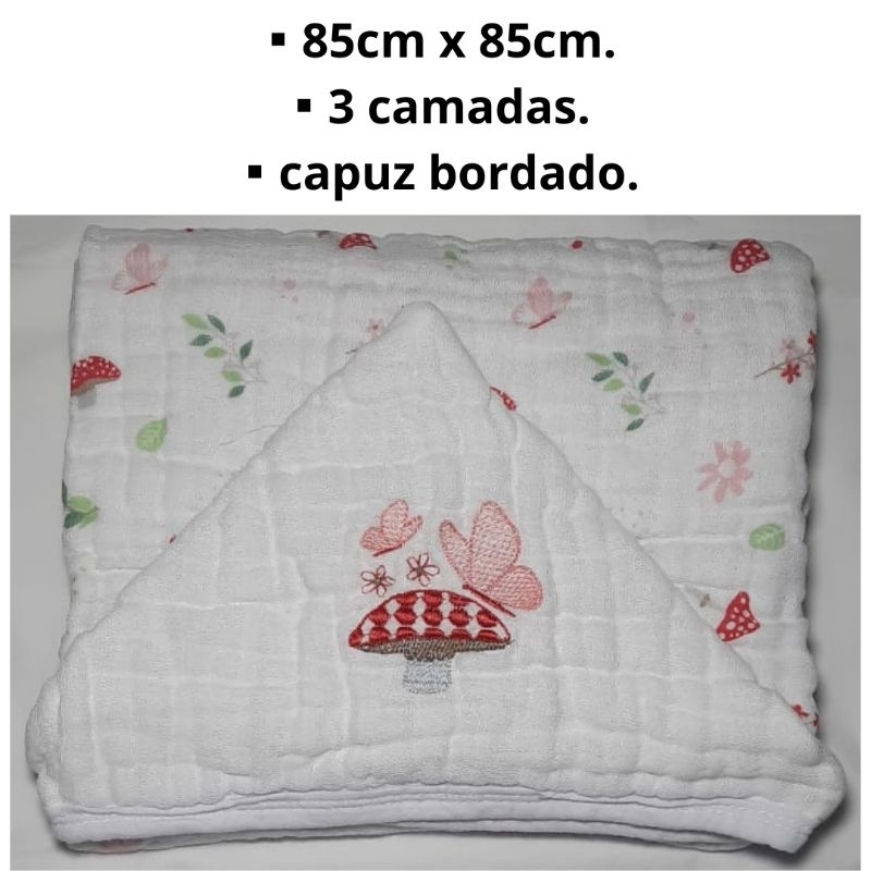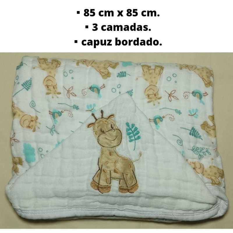 Toalha de banho para bebê capuz bordado fralda soft 100%algodão 2e3 camadas enxoval de bebê infantil
