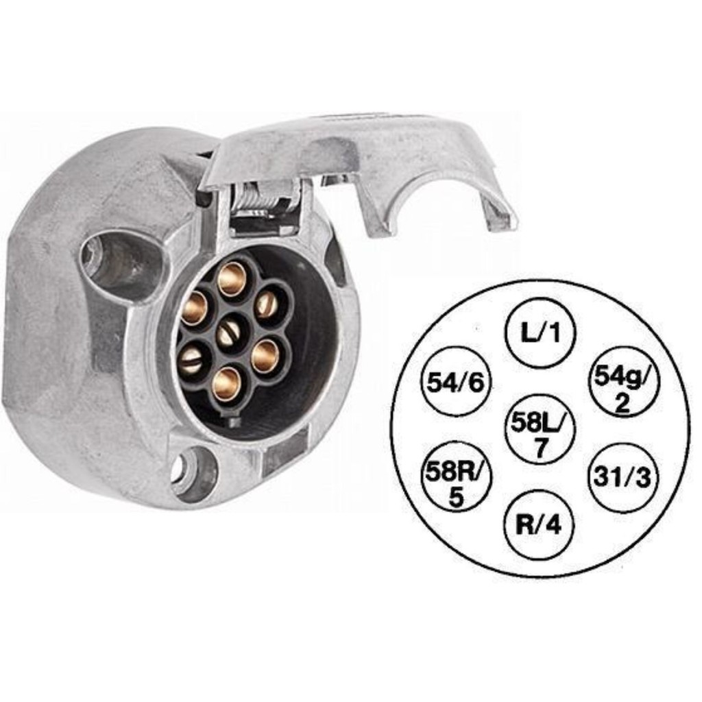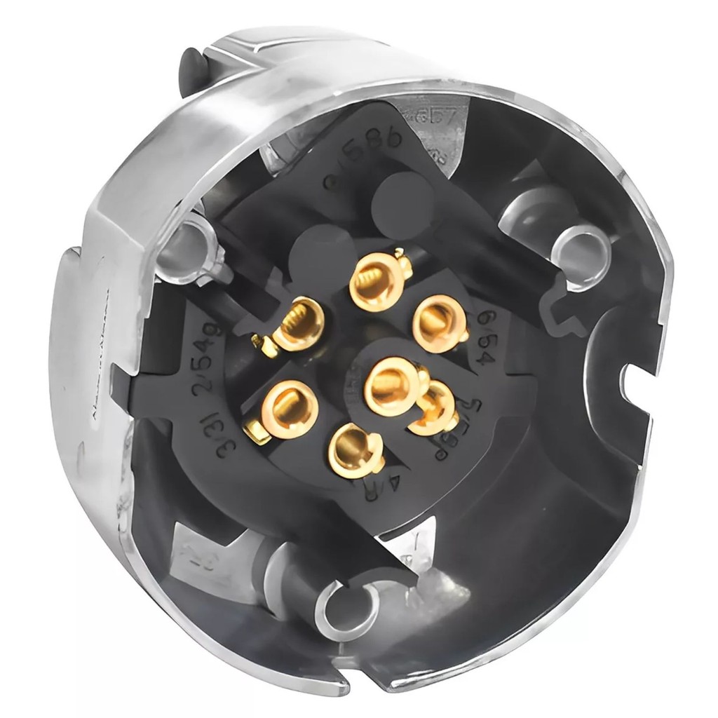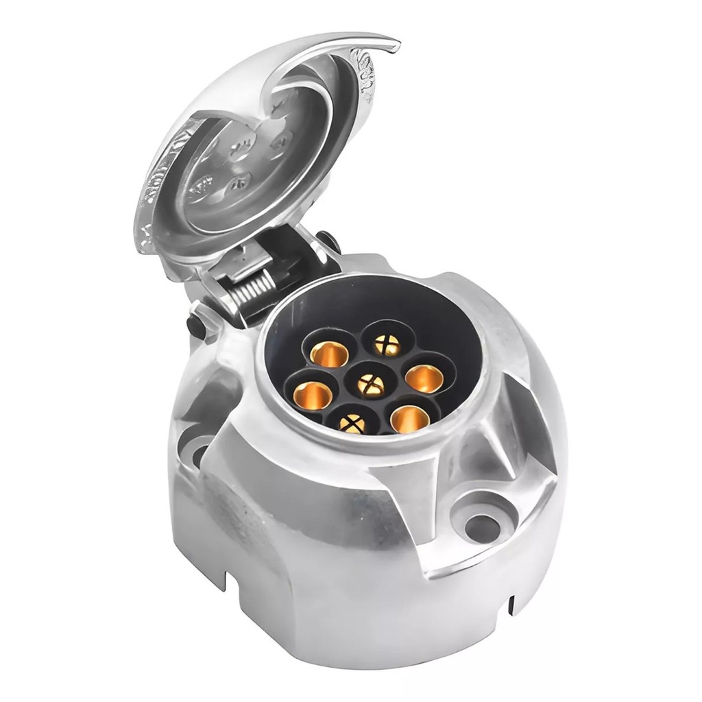 Tomada Elétrica Engate para Carretinha Redonda Metal Alumínio 7 Pólos Femêa