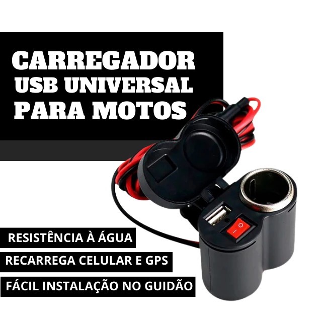 Tomada para Moto USB 12V Acendedor Motocicleta Carregado